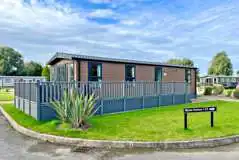 Luxury static holiday lodges that include two bedrooms (a twin and king-size bed), an ensuite with a bath, a lounge and kitchen.