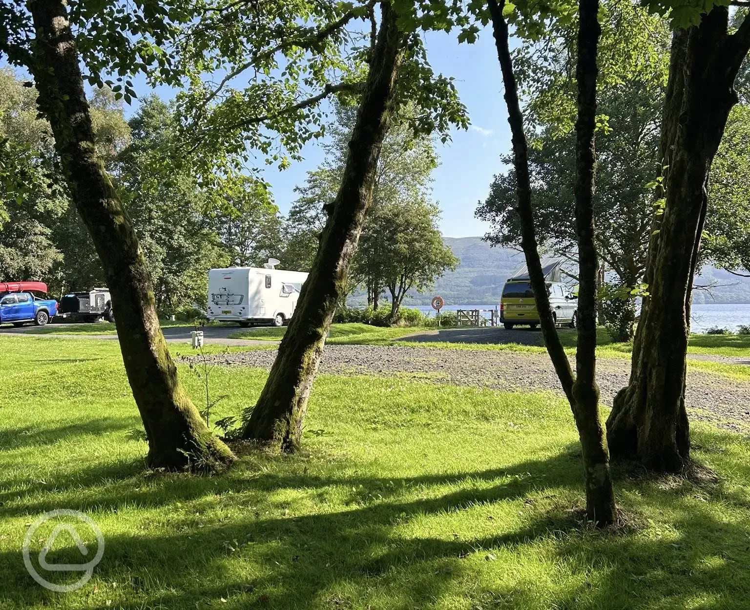 This family friendly site sits right on the banks of the loch, where you can enjoy stunning views in this peaceful setting, as well as direct access. There is plenty of wildlife to be spotted and the charming village of Luss close by. Plus, from this base you can access the footpath and cycle route from Balloch to Tarbet, as well as water sports and hiking. Both campers and tourers are welcome here. To the northern end of the site, there is a spacious grass camping area to pitch your tent and offering views over the loch and towards Ben Lomond, some with access to electricity. For tourers, you'll find electric hardstanding pitches where you can relax and take in the view, some of which are right by the loch. Dogs welcome.