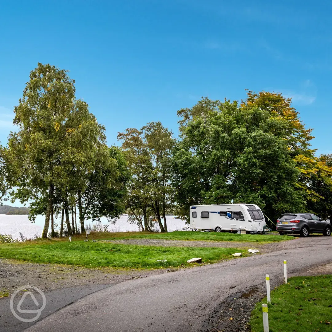 Grass pitches with optional electric for tents. All pitches are in a secure area and have views over Loch Lomond.
