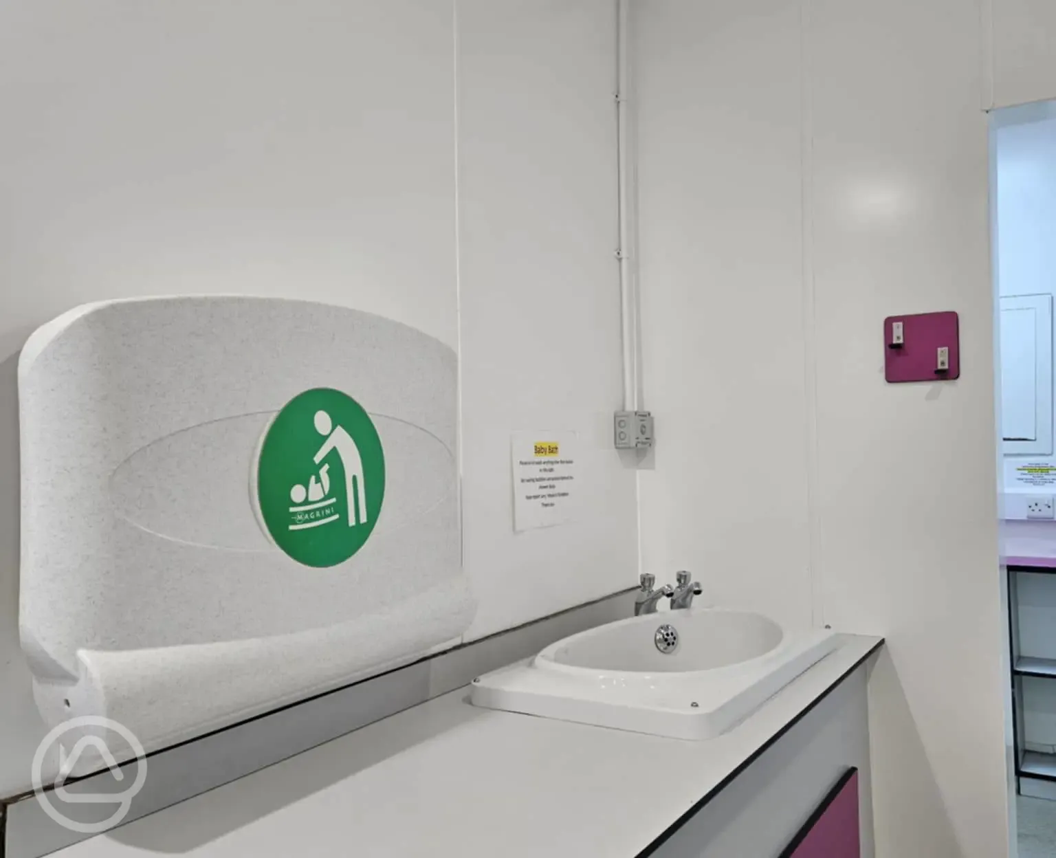 Site facilities include modern toilets with baby changing, showers, and a laundrette with three dryers and three washing machines.