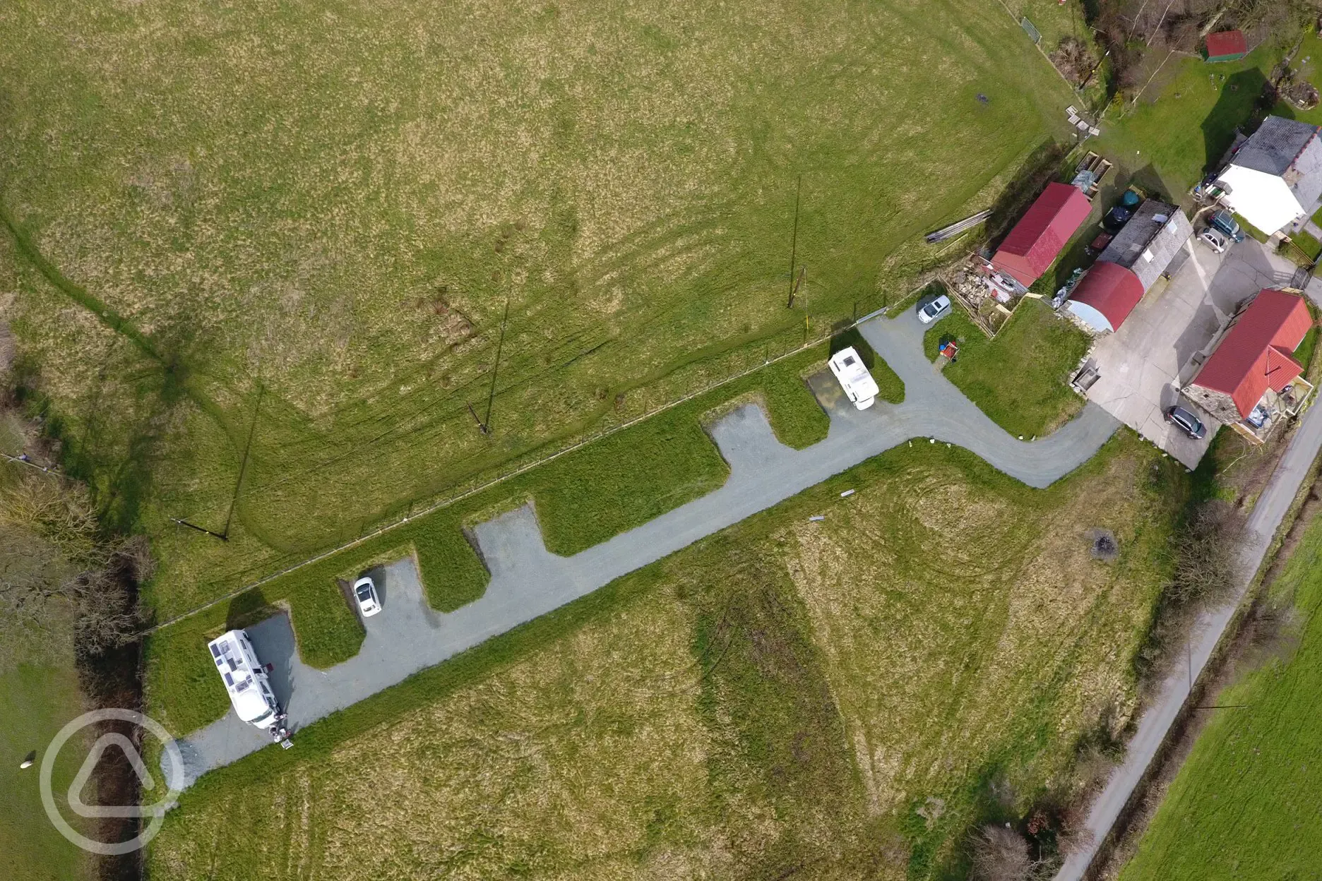 All-weather 6m x 6m hardstandings with EHUs suitable for tents, caravans and motorhomes.