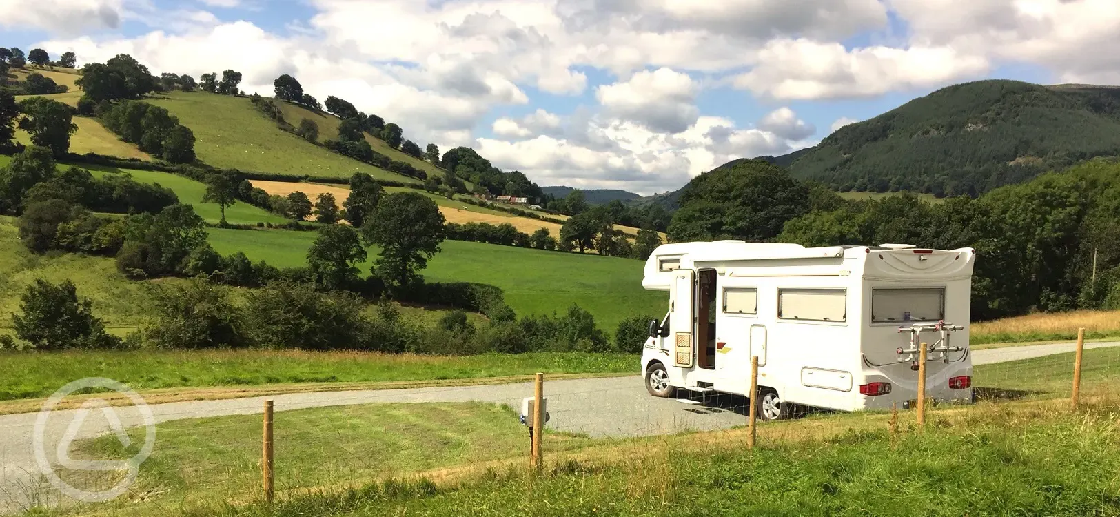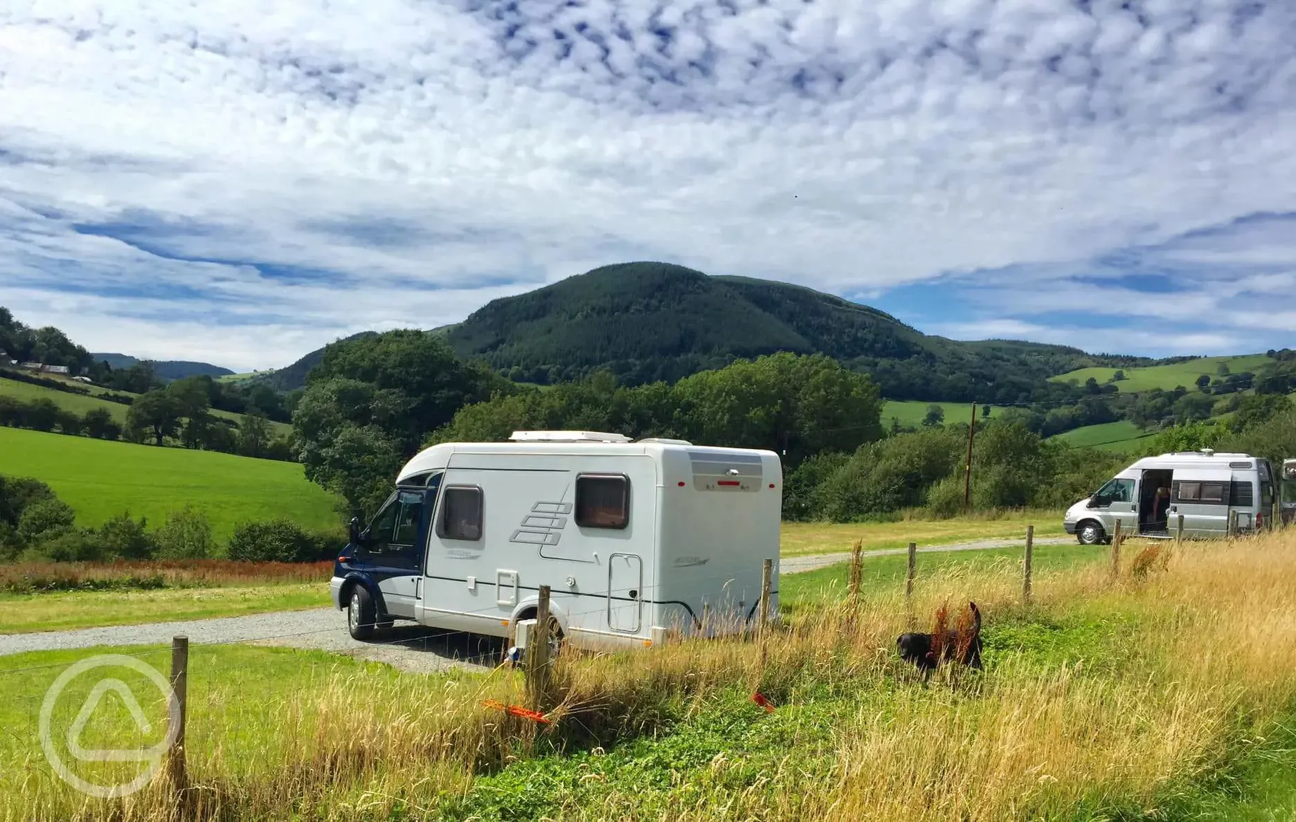 Wern Ddu Farm Campsite is a small and peaceful members only Camping and Caravanning Club Certificated Site nestling 8 miles into Wales in the delightful Hirnant Valley and the foothills of the Berwyn Mountains. Campervans, motorhomes and caravans are all welcome, and with lovely views in all directions, it's the perfect place to call home for a few nights. Wern Ddu is secluded but surprisingly well-connected. You're just 90 mins from Manchester and Birmingham, 6 miles from Snowdonia and all of its incredible outdoor activities. The farm attracts abundant birdlife so you can sleep in the heart of nature. Red-kites, buzzards, herons, jays, red-starts and many other birds visit and after dark, the owls make themselves heard, which is a bit of a hoot. With sturdy hardstandings (each with hook-up) and a wide site road entrance, there's no chance of getting bogged down whatever the weather or season. It's the perfect place for dogs to holiday, so bring your furry friend along!