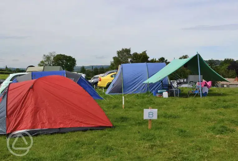 Grass pitches sized at 7m x 7m for tents, caravans and small motorhomes with optional electric.