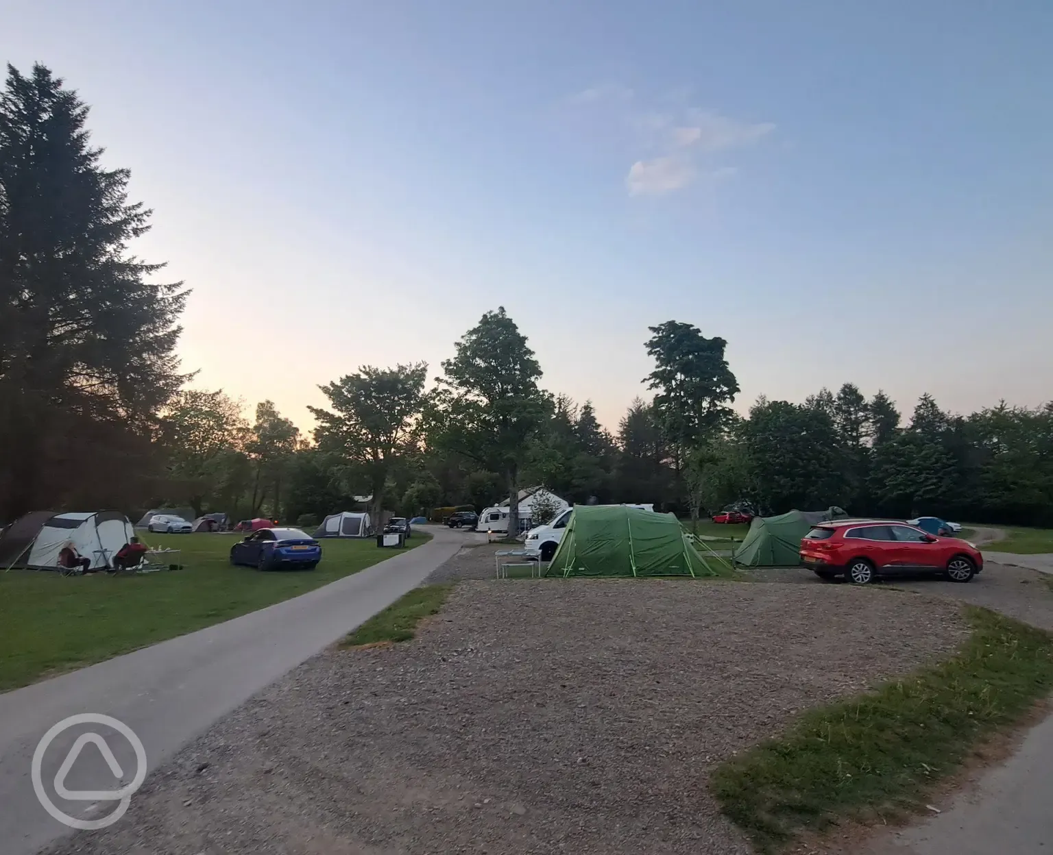 Level gravel pitches with water, drainage, electricity and TV point (please bring your own coax cable).
