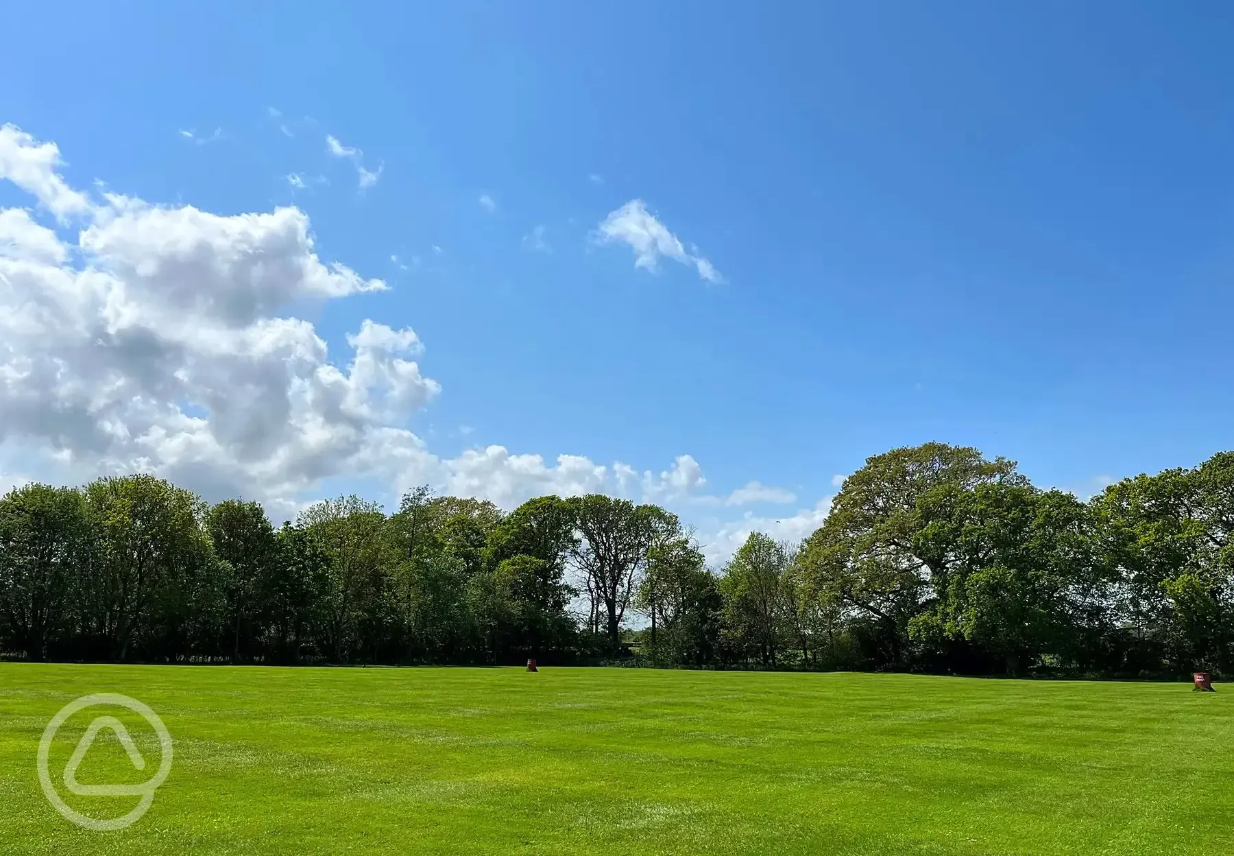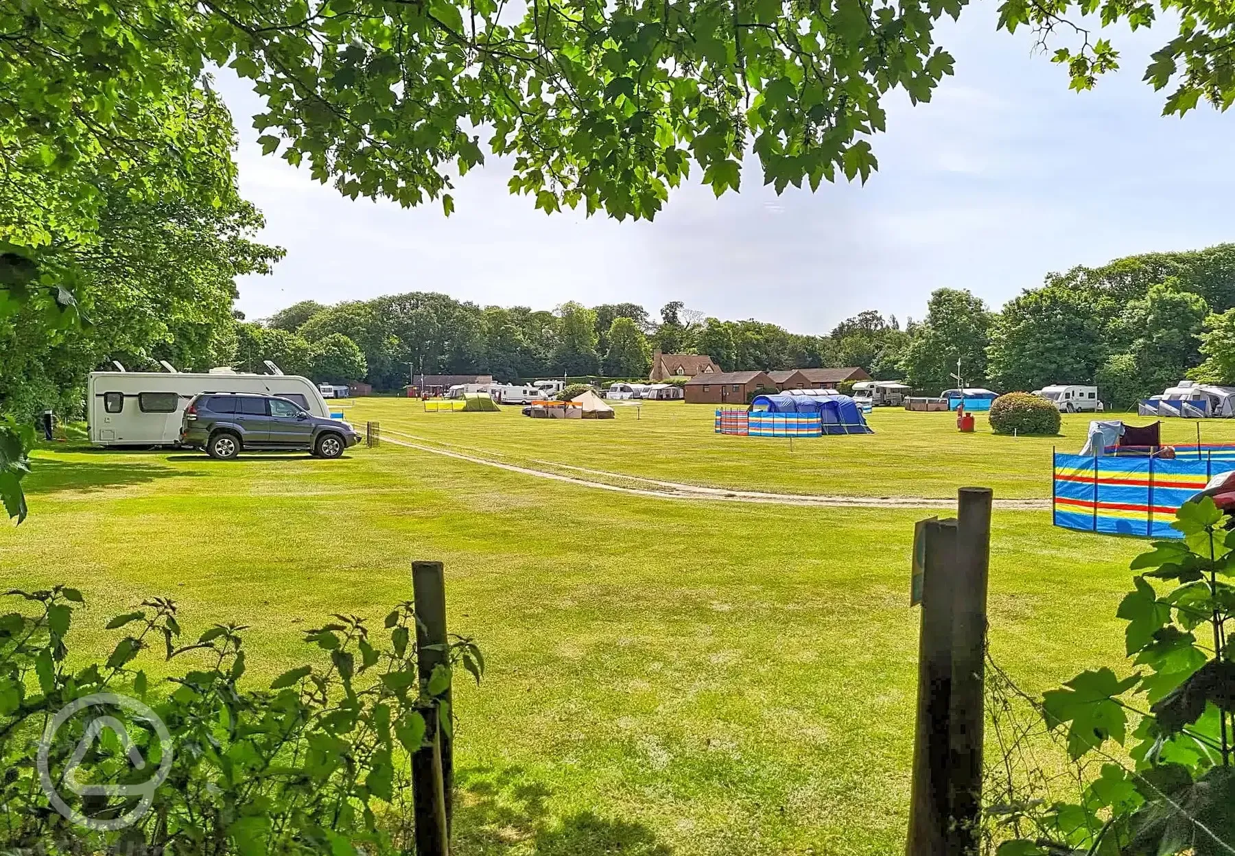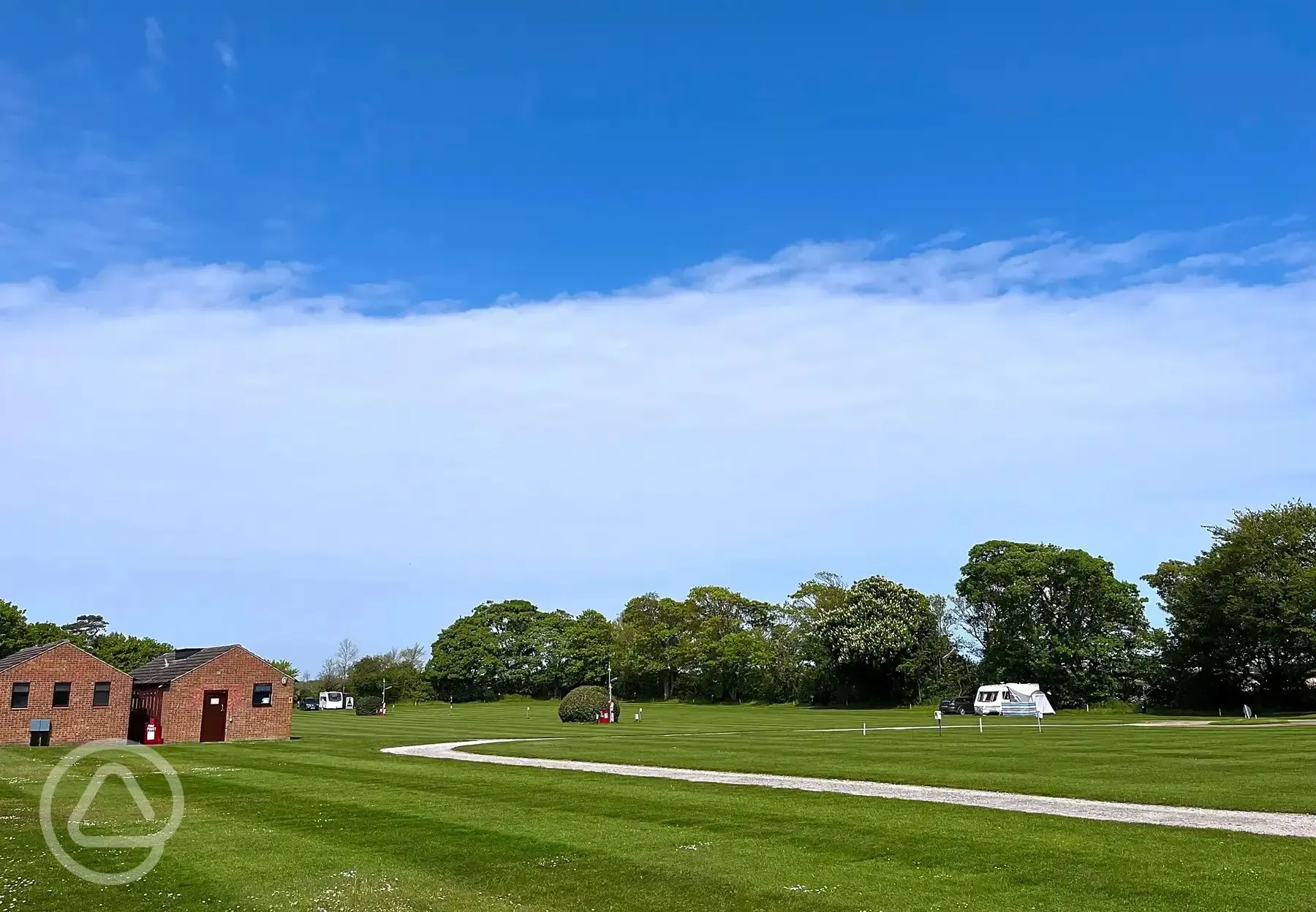 Grass pitches fully serviced with 16-Amp electric, water, grey water disposal and a connection for TV.