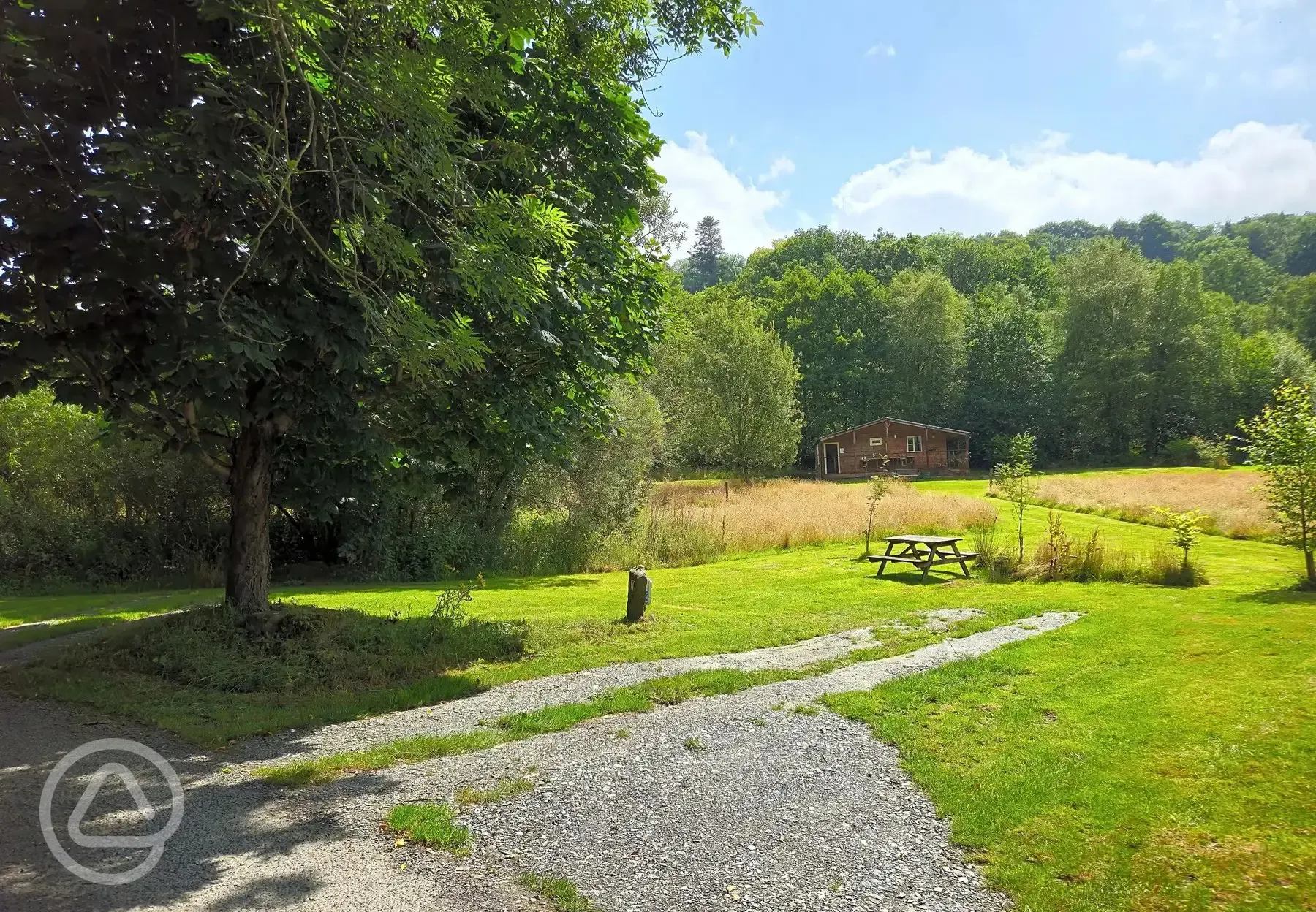 Small, peaceful campsite located in the Ceredigion countryside between woodlands and a stream