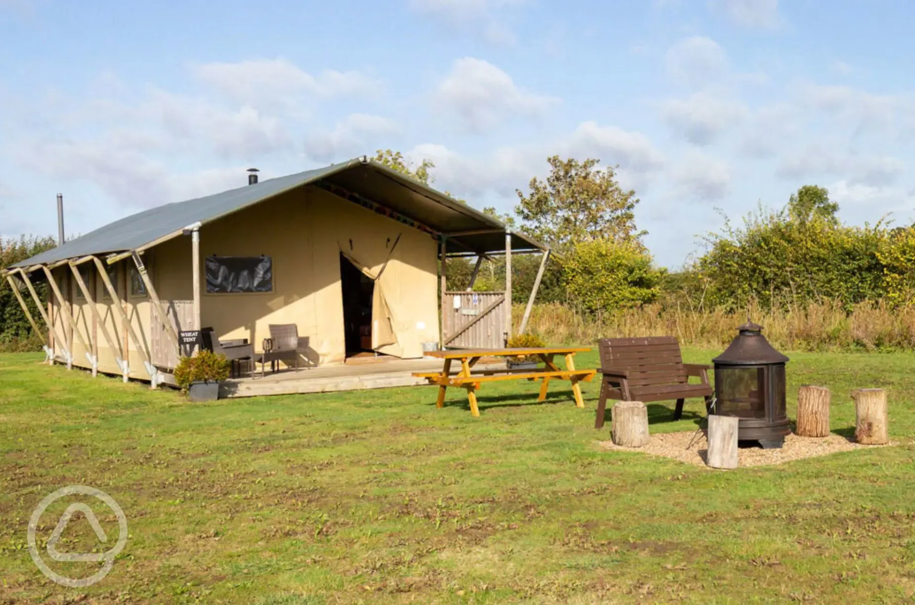 Boundary Farm Glamping is an ideal location where family and friends can enjoy a relaxing break away from the hustle and bustle of daily life and relish outdoor living without compromising on home comforts. The two spacious luxury safari tents and an A Scandi cabin, ideal country escape near the coast. Set in a two-acre meadow, on a arable working farm where you can fly kites, play rounders, toast marshmallows around the fire pit or stargaze