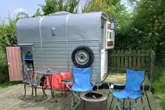 Sleeping two adults only in a double sofa bed, linen and towels are provided. Private decking with BBQ and fire pit. All cutlery and crockery is included. Shared WC/shower facilities just a short walk away.