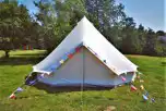Bell tents equipped with a double bed (bedding not provided), rugs, bunting and fairy lights. Outside is a picnic bench and fire pit. Optional single chair beds. Shared facilities nearby.