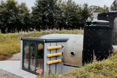 Underground submarine with a sofa bed, kitchenette and ensuite loo with a unique external shower. Dog friendly.