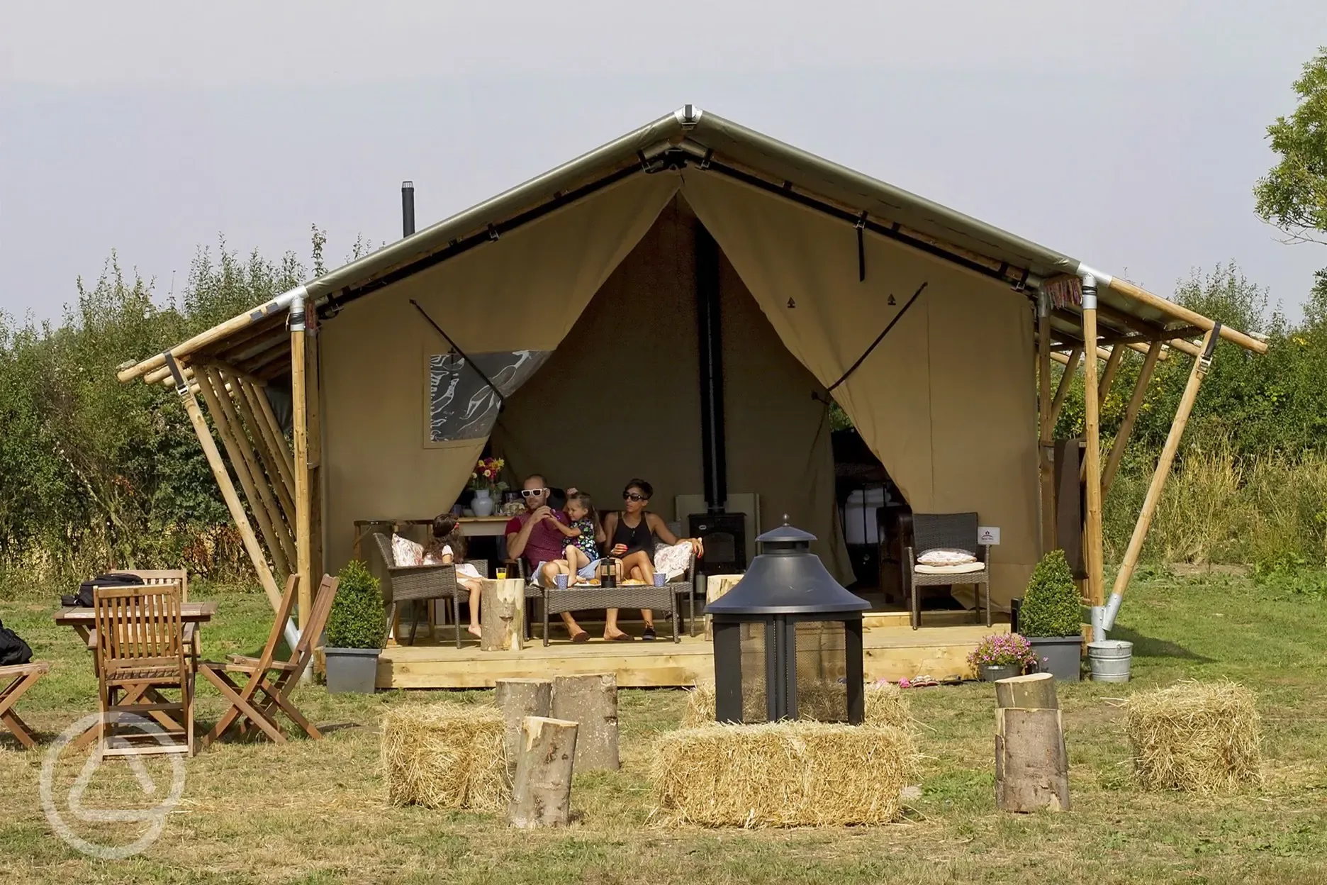 Boundary Farm Glamping is an ideal location where family and friends can enjoy a relaxing break away from the hustle and bustle of daily life and relish outdoor living without compromising on home comforts. The two spacious luxury safari tents and an A Scandi cabin, ideal country escape near the coast. Set in a two-acre meadow, on a arable working farm where you can fly kites, play rounders, toast marshmallows around the fire pit or stargaze