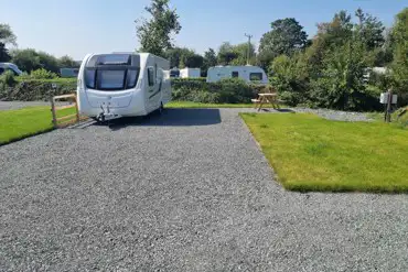 Hardstanding pitches for tourers which offer electric, water and waste hook-ups along with a bench table set.