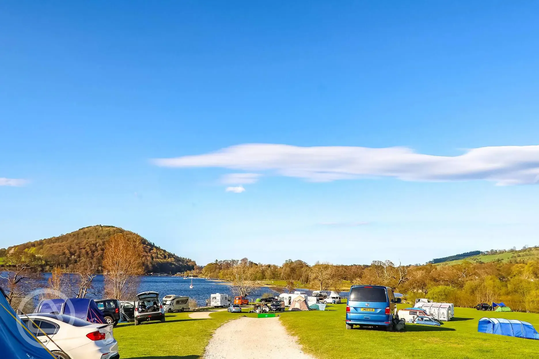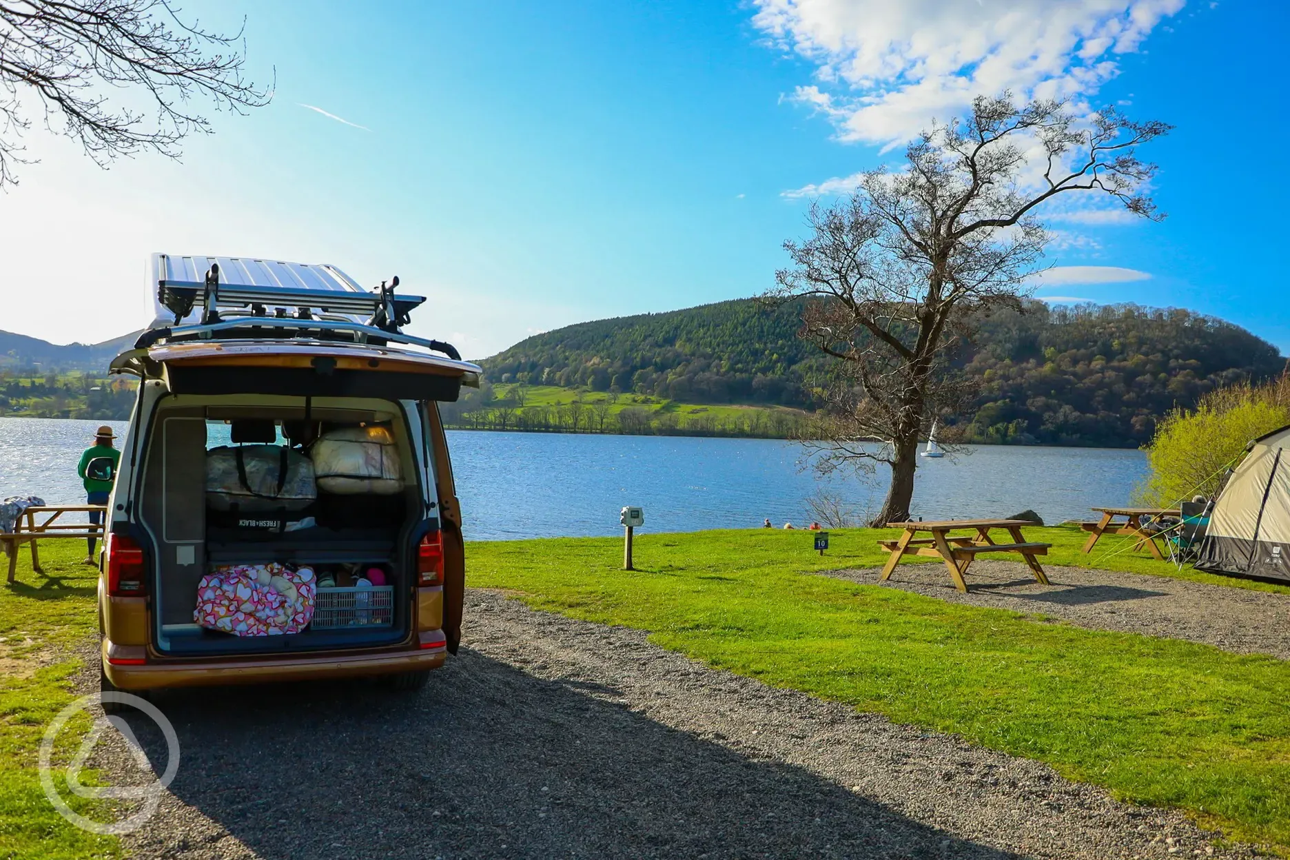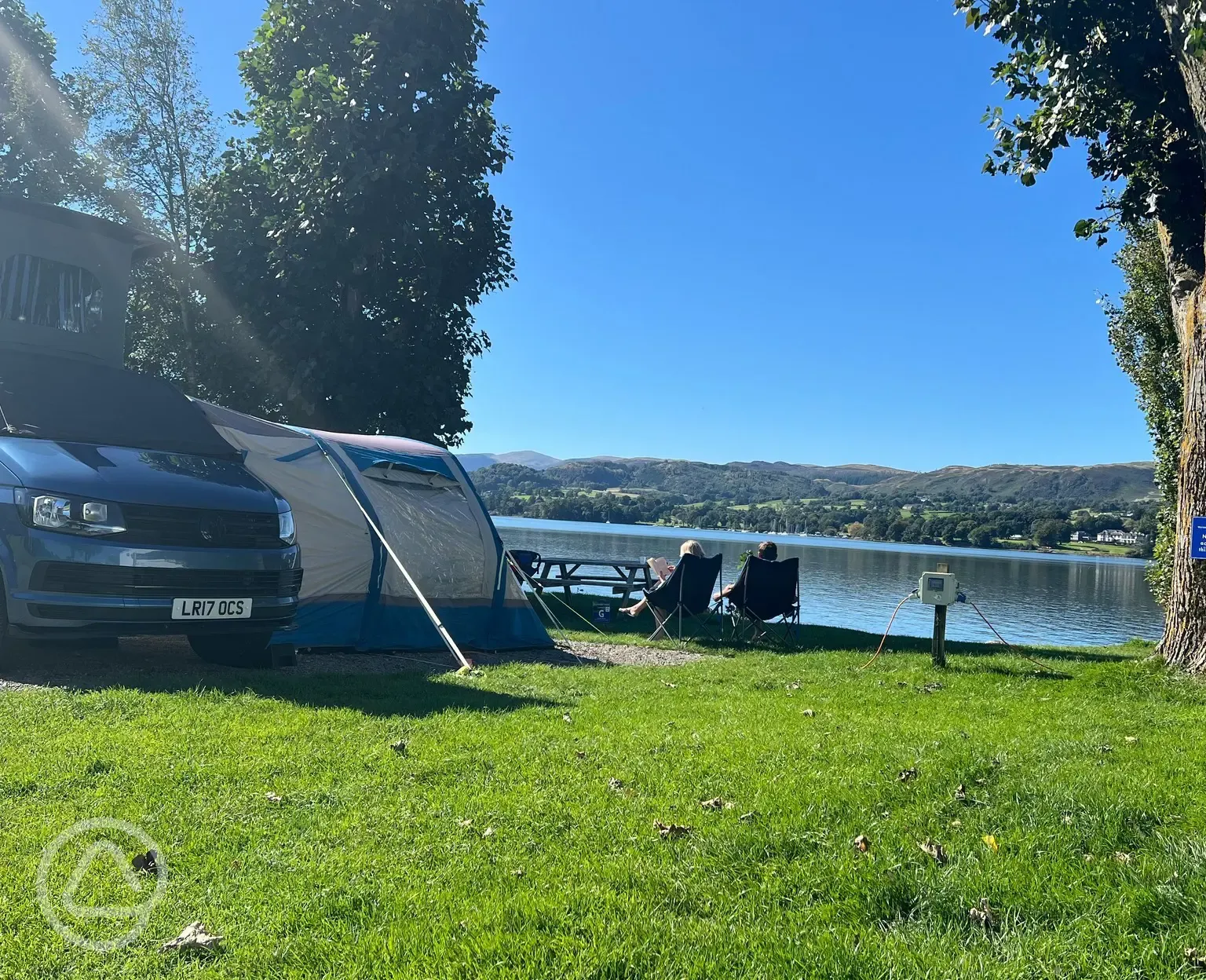 Lakeside pitches with amazing views over Ullswater and access to an electric hook up.
