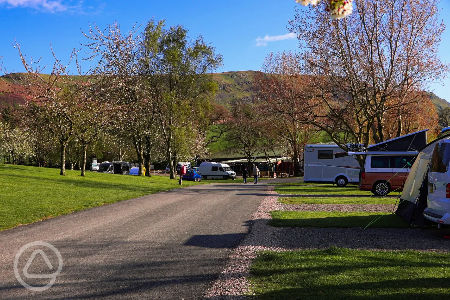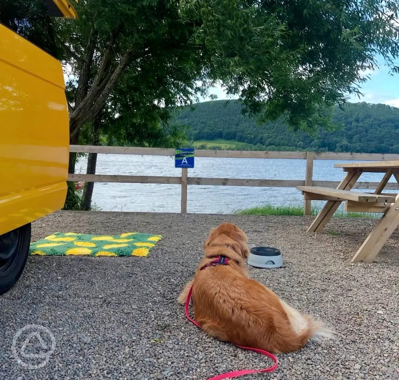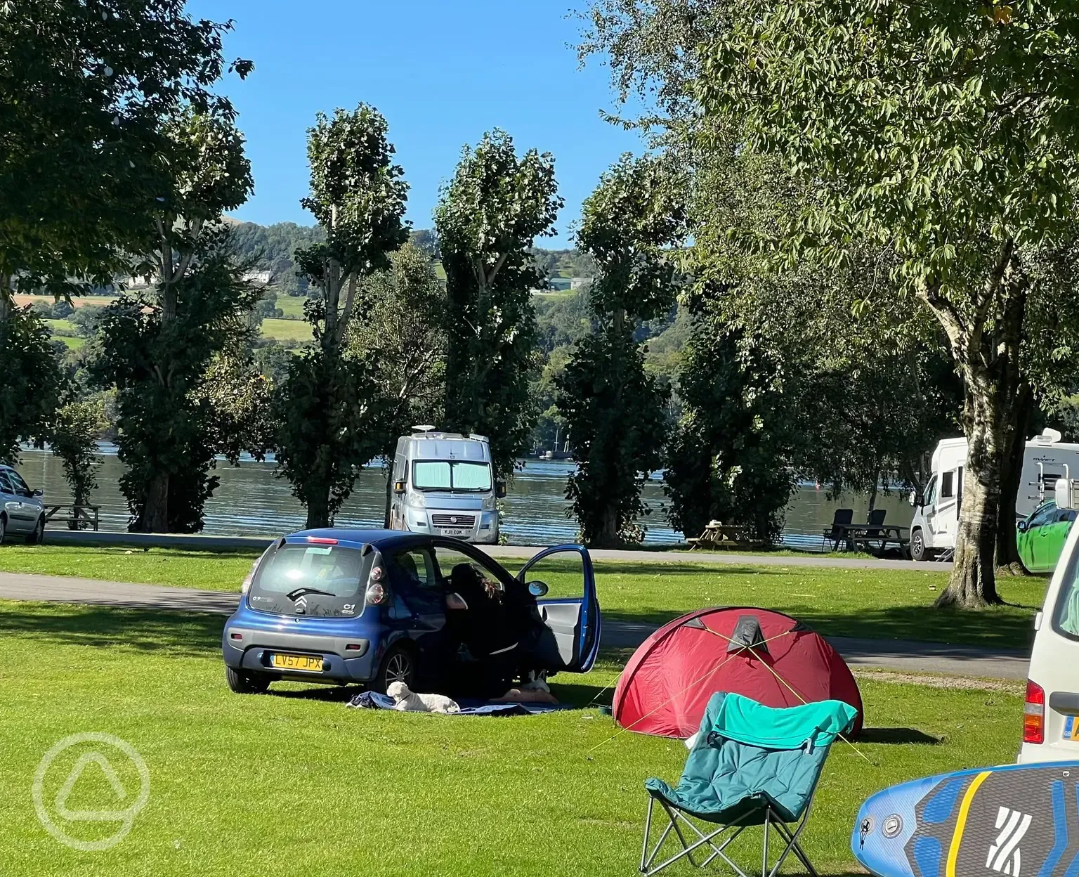 Lakeside pitches with amazing views over Ullswater and access to an electric hook up.