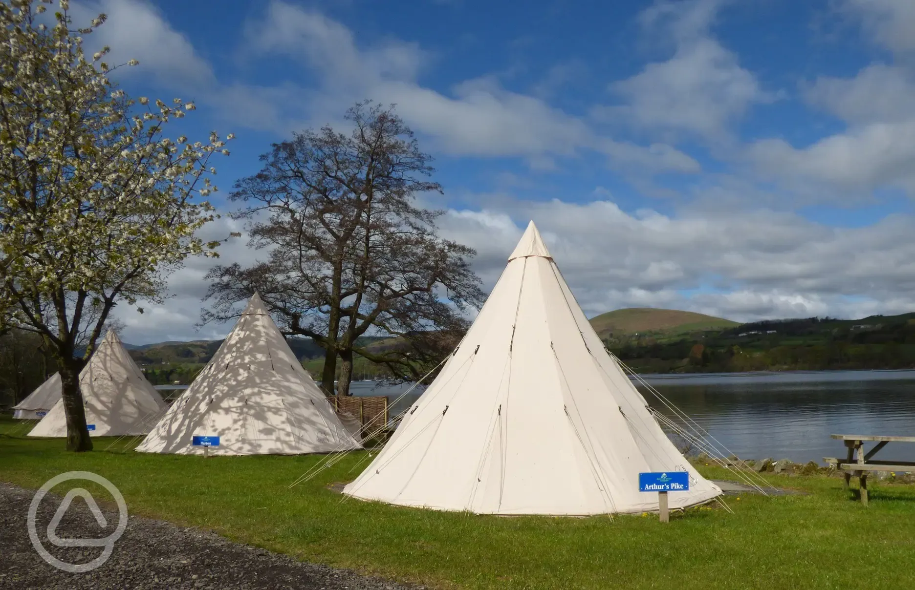 Range of accommodation options to choose from, including camping, touring, tipis and lakeside pods