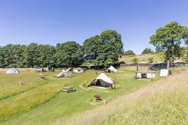 With glamping being more and more about the experience, The Paddock really delivers. You can lay your head in the simple perfection of a camping pitch with a roaring fire, or choose to take things up a notch with a set of uniquely quirky glamping Landpods. The pods are packed with individual details and offers the beds you need inside, an enchanting atmosphere, plus a chance to peel back the roof and watch the stars any time you fancy. Or you might fall in love with a spacious and beautifully furnished yurt, strewn with throw pillows, or even a big safari tent that can sleep up to 8! - the choice is yours. The safari tent includes a toasty wood burner, full double bed, bunk bed and sofa beds. Guests are treated to two separate bathrooms, two bedrooms and a kitchen with all the bits and bobs you'll need, plus a large living room with dining table. Outside is a fabulous fire pit and BBQ with log seating. Dogs are welcome with campers and in all glamping options except the Landpods.