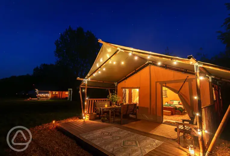 Get away from it all with a luxury safari tent hot tub glamping experience in the Somerset countryside.