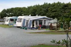 Seasonal pitches for tourers, fully serviced with 16-Amp electric, water supply and grey water drainage.