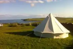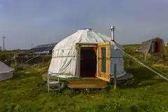 Bell tents sleeping three, available in summer only. Wood stove with firewood, a small coffee table, a single futon and a double futon. Bedding not included. Please pack bedding or select it as a bookable extra. Sorry, no pets. Shared facilities nearby.