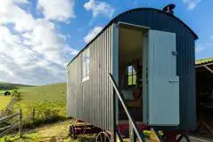 A shepherd's hut equipped with a double bed, bedding, a fold-out table, seating, electric lighting and wood-burning stove. There's a dedicated covered cooking area with picnic bench outside the hut, in addition to a fire pit/BBQ. Shared facilities nearby.