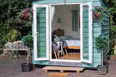 Cosy huts which sleep up to two adults with tea and coffee making facilities, a DAB Bluetooth radio plus a Smart TV/DVD. Each includes a comfy double bed, two small armchairs and pull out table. Private outdoor area with firepit too. Shared facilities.