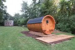 Hand-built by the owner, the glamping barrel includes a double bed and the seating area can be converted to provide a third bed.