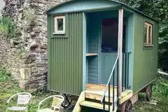 Set next to the castle walls, this shepherd's hut is ideal for two and includes a double bed and dining area.