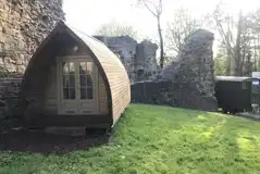 Castle Knights stems from owner Tom Humphreys' love of the outdoors and a desire to share this unique location on Usk Castle grounds with families, couples and friends. Fans of traditional camping can pitch up a tent in the grounds within easy reach of onsite amenities. Parking is in a paddock nearby. For something a little different, the site has a range of unique glamping accommodation including the Glyndwr Fort with medieval decor, enchanting shepherd's huts, a Victorian inspired pod and a yurt hideaway. Mattress and pillow provided or go for the gold standard treatment and have bedding, faux fur throws and sheep skin rugs waiting for you. Well behaved dogs welcome at campsite but not in glamping accommodation. Sorry, but the site cannot accommodate caravans.