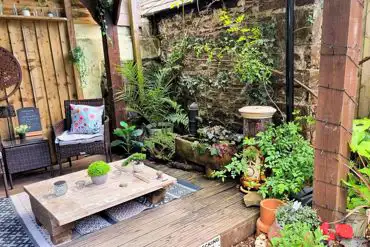 Secluded shepherd's hut set facing woodland with a small double bed, ensuite shower room and a small kitchen. Outside is a private hot tub in a covered area and parking is next to the accommodation.