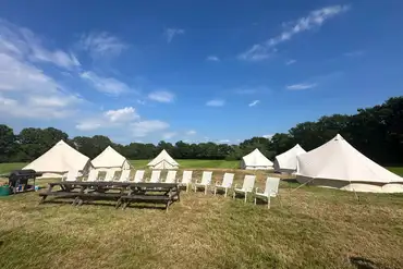 If you're looking for somewhere rural and relaxing to enjoy the great outdoors, open skies, space and fresh country air look no further. If you're in the mood for a day trip, there's plenty to explore in the nearby towns, including Tenterden. Enjoy your glamping getaway and choose between furnished and unfurnished pre-erected bell tents. Furnished bell tents are available for weekends or longer stays by arrangement, and equipped with air beds, bedding, towels, equipment and handy extras like your own BBQs with gas included and a fire pit and logs to keep you toasty. Each group booking is complete with private facilities. For exclusive use, guests must book three bell tents or more. Return and unwind after a day of exploring the surrounding villages, or the gorgeous High Weald AONB. This chilled out space is ideal for daytime games and BBQs and for watching the stars under a clear night sky. This is a real home away from home, under the stars!