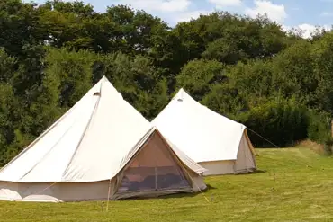 Bell tents furnished with with single airbeds, bedding, towels, crockery, cutlery, cooking equipment, and BBQ with gas. Plus firepit and logs subject to weather. Sorry, no pets. Access to private facilities. Spring mattresses may be available on request.