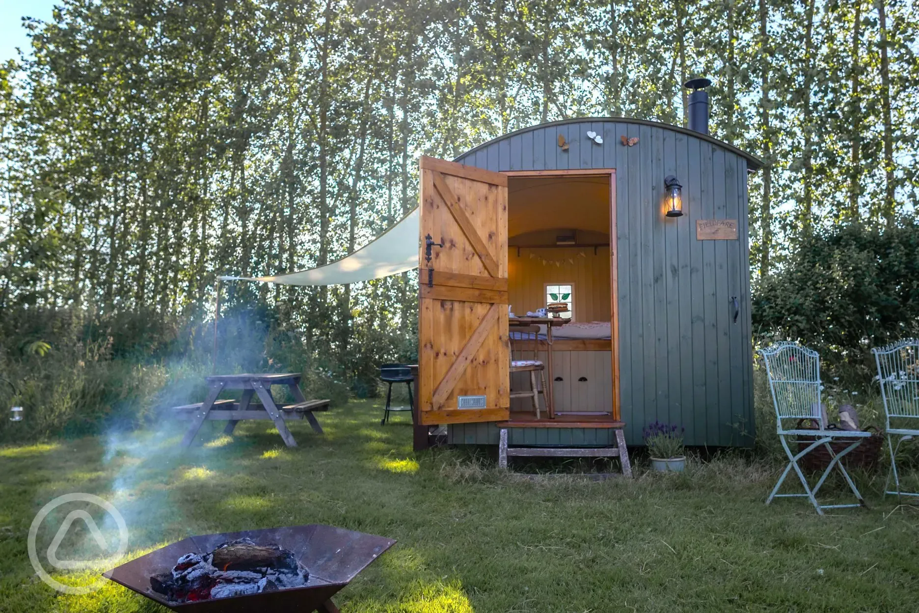 Campers and glampers can enjoy spending time at this scenic orchard site in Norfolk. Half an hour from Thetford forest, and within 50 minutes of Norwich and the coast, you will be spoilt for choice for days out with plenty of attractions and destinations to explore! Offering a peaceful getaway, the site has just one 8m x 8m electric grass pitch in the orchard. The pitch welcomes up to four guests with a 6 amp hook up, fire pit and your own picnic bench to enjoy a lovely picnic lunch. If glamping is more your style, the site has four charming bell tents on offer, each sleeping up to four. Inside you will find a double and two air beds, towels, blankets and tea/coffee facilities for your morning cuppa. Please note, bedding is only provided for the double. Great for couples, the site also has a shepherd's hut for two. The Fieldfare shepherd's hut is 2m x 4m equipped with a double bed, table and chairs along with a wood burner for those cooler evenings. Outside both the bell tents and shepherd's huts you will find a BBQ, fire pit and there is also a gas cooker, perfect for your morning fry up! BBQs are permitted onsite along with the fire pits provided, so don't forget to bring your chef's apron. Dogs are welcome too, with one allowed per pitch and in the glamping units.
