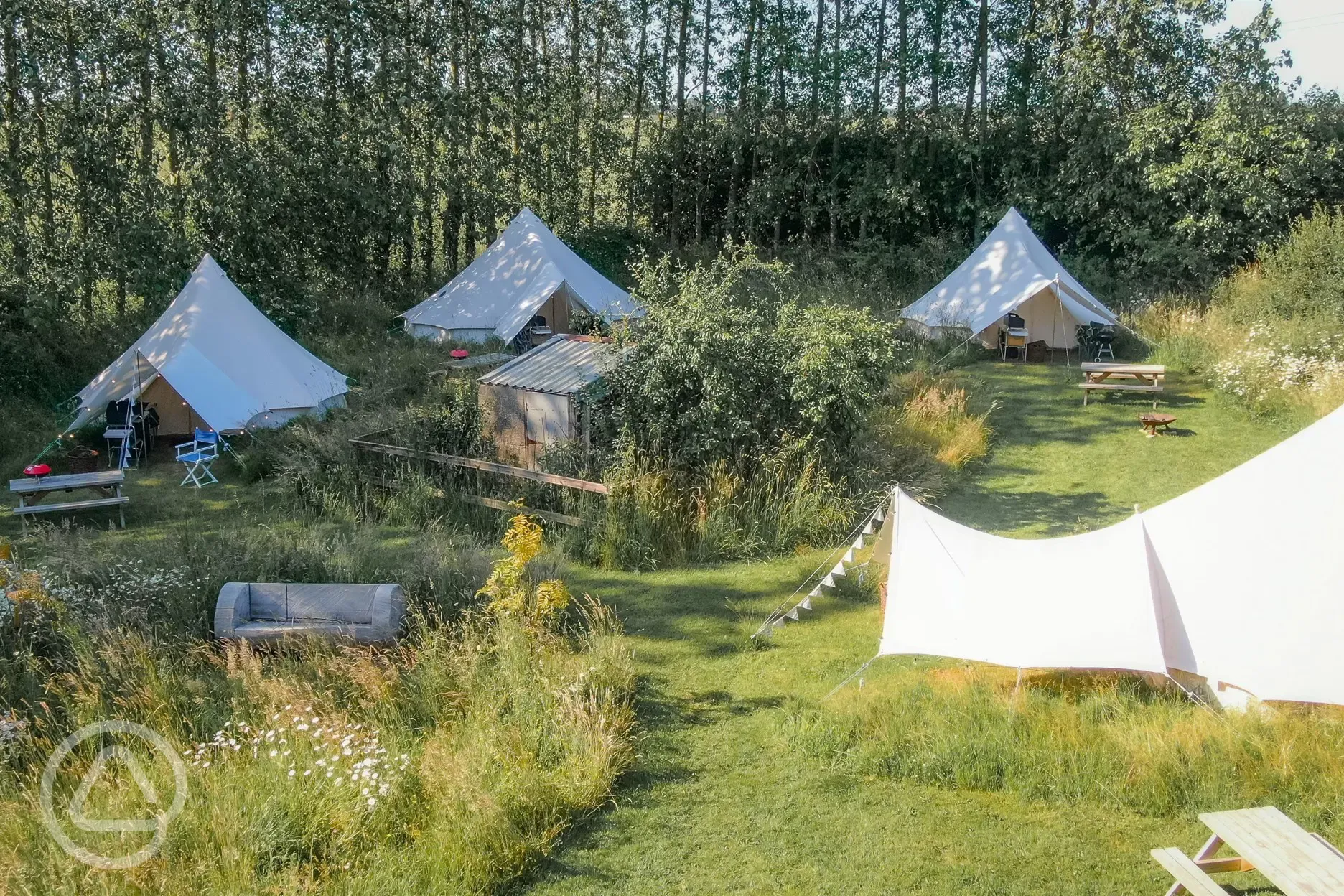 Relaxed countryside camping and glamping within the Norfolk Broads National Park and a 20 minute walk to Norwich.