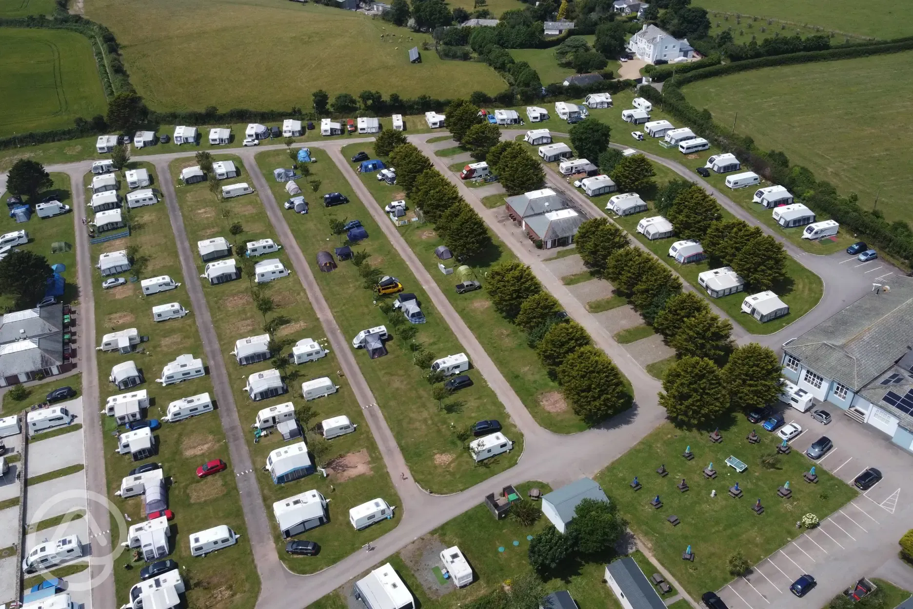 Grass pitches with 10A electric and space for an awning, for tents, roof tents and tourers up to 6.5m.