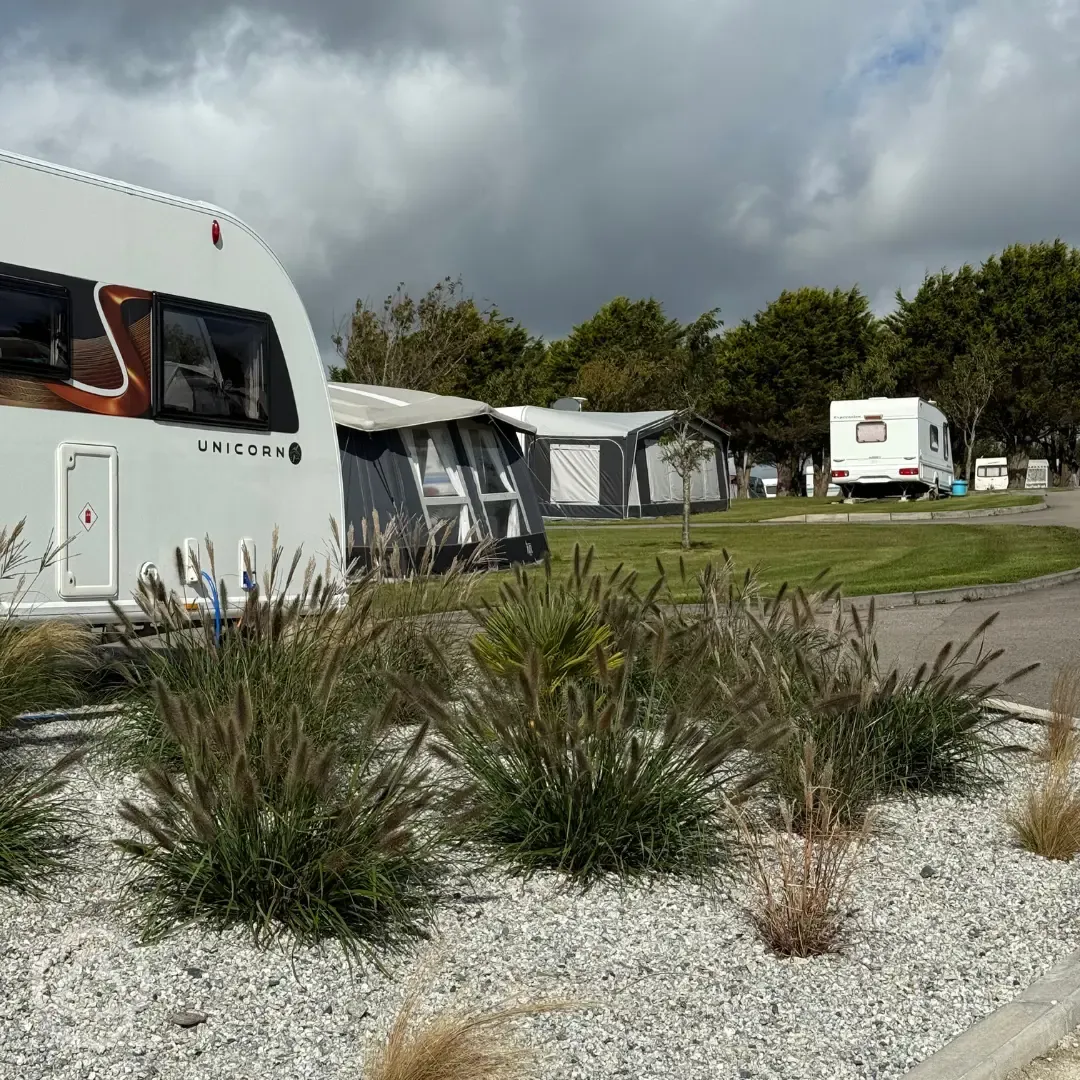 Hardstanding pitches of 12m x 10m with electricity, drinking water, grey waste disposal and space for an awning. Suitable for tourers up to a maximum of 8m.