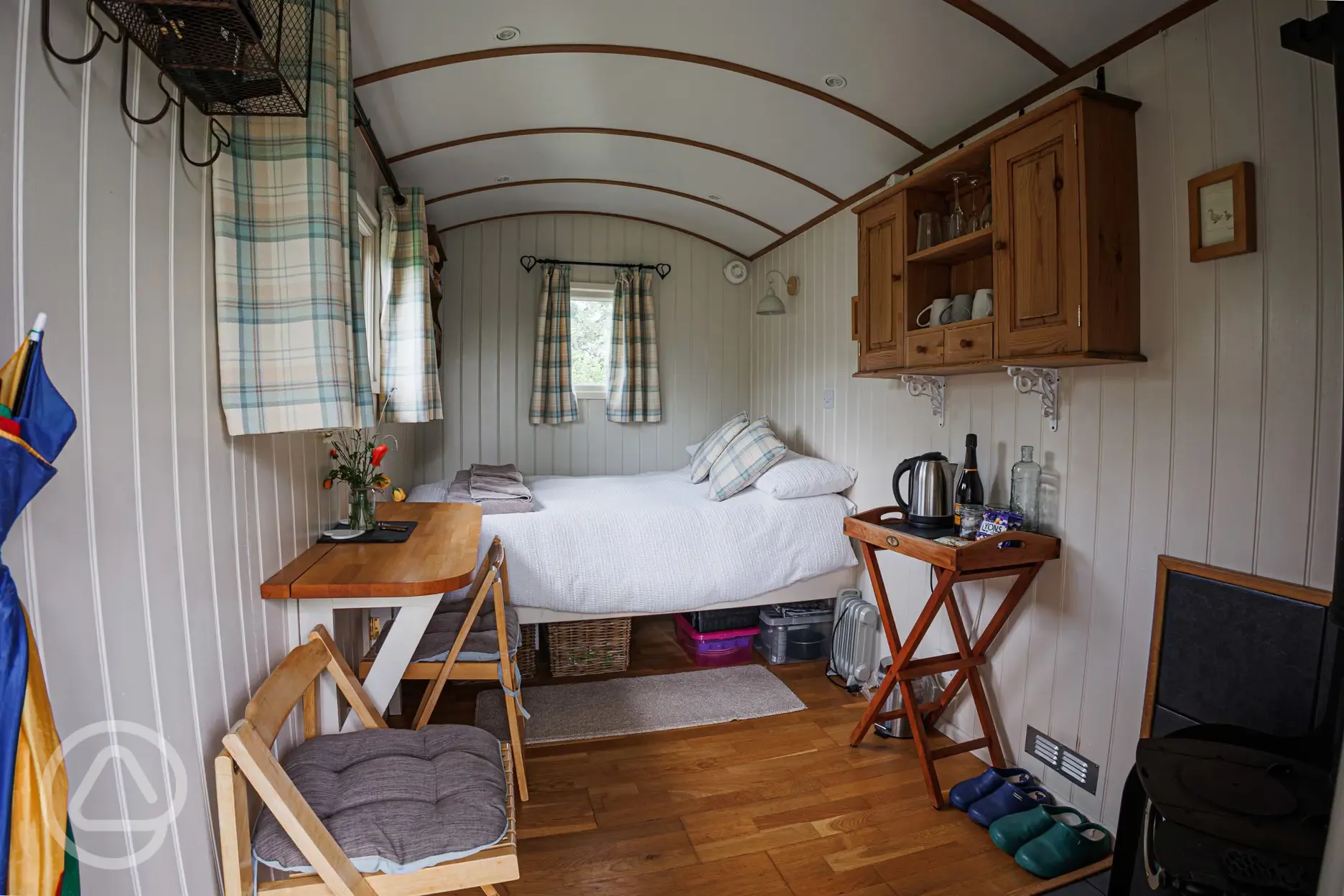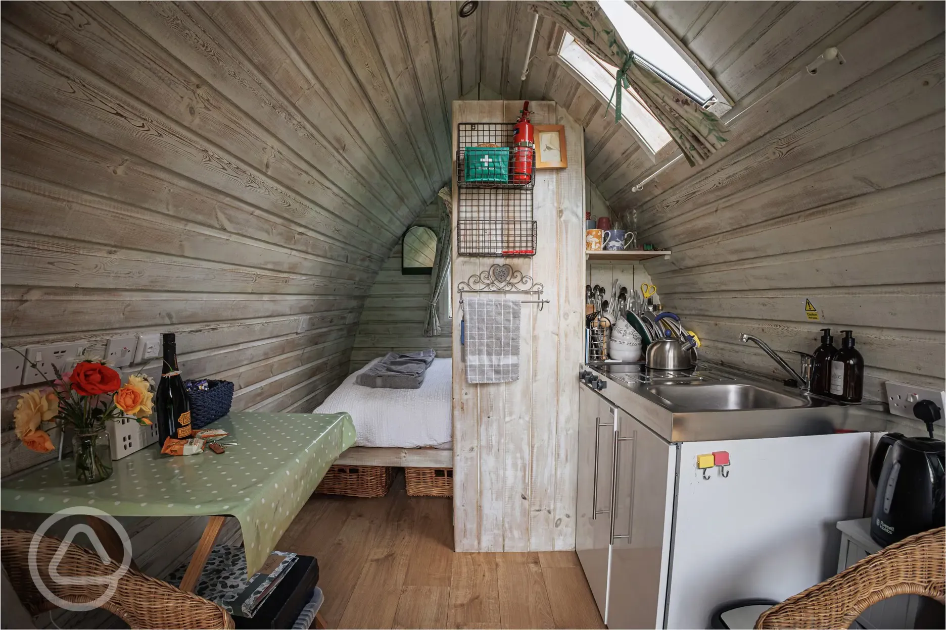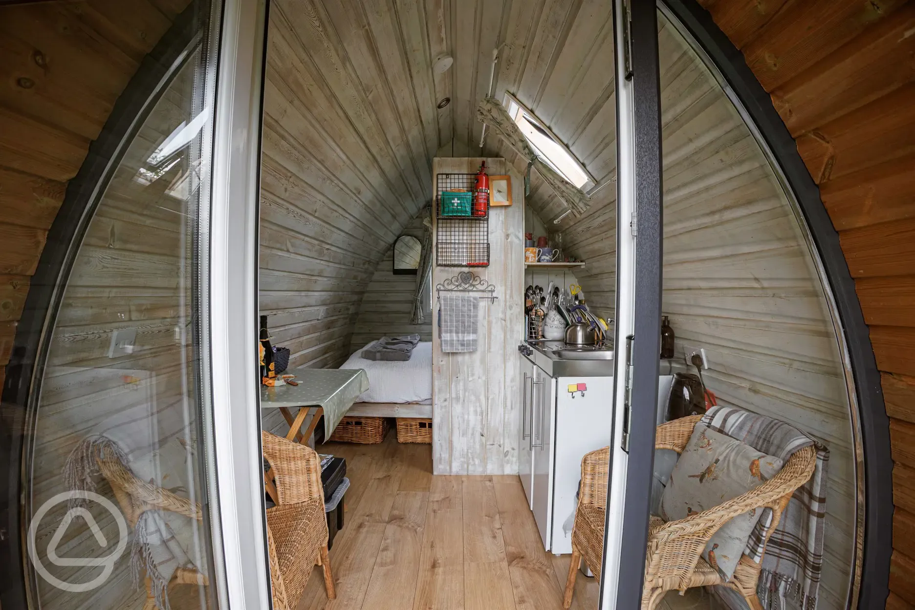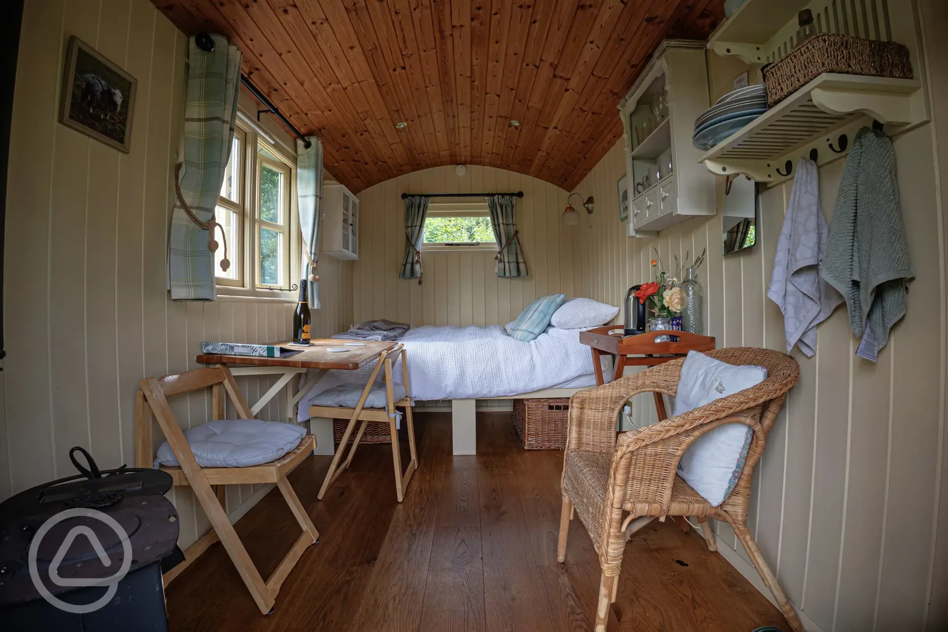 Bedding and towels are provided in both the glamping pod and the shepherd's huts.