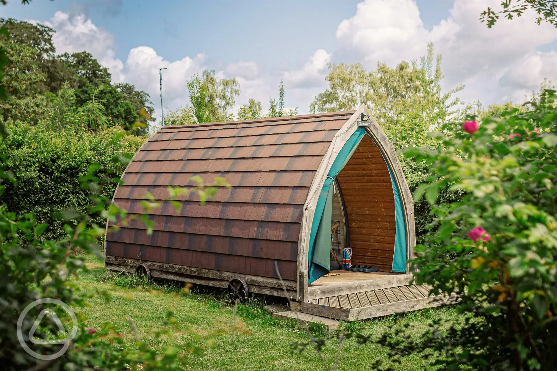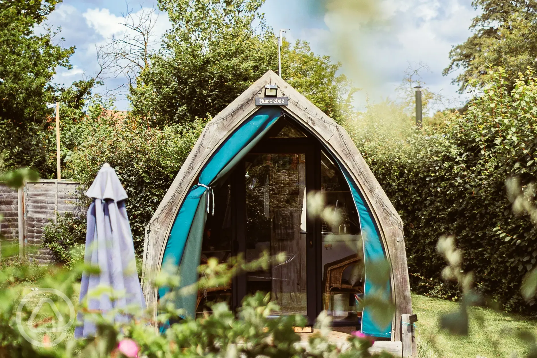 Hire a boat in Beccles, visit the beaches of Southwold, go crabbing in Walberswick or sit back and relax amongst nature at this wildlife haven. Family and dog friendly, this is a lovely spot to slow down and escape from the everyday. There are just five grass pitches with optional 10 amp electric hook up for tents only. Each spacious pitch is surrounded by rewilded areas to give privacy and the feeling of being immersed in nature. You'll also be provided with your own picnic bench. If glamping is more your style, the Bumblebee Glamping Pod is the ideal romantic getaway for two. Inside you will find a cosy double bed, along with a dining table, mini kitchenette, kettle and fridge, with bedding and towels both provided. There are also two shepherd's huts to choose between, Dragonfly and Foxglove. These are complete with a cosy double bed with all linen and towels provided, a dining table, cooking equipment for use in an outdoor cooking area as well as access to a small, communal kitchenette space with a kettle, microwave, toaster, fridge and freezer. All glamping units have their own outdoor seating, fire pit and private designated shower/toilet in a nearby shower block. Up to two people can sleep in the shepherd's hut, but there is space for a travel cot and space outside to pitch a tent for an additional four people. For walkers and cyclists (those travelling without a vehicle), there is also a small, non electric grass pitch for one or two man tents. A maximum of two dogs are allowed for an additional cost, just please ensure they remain on the lead. Campfires are allowed and you can rent a fire pit on site from the honesty shop along with wood, kindling and other goodies.