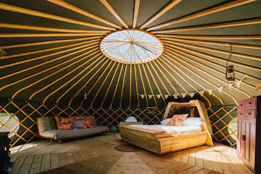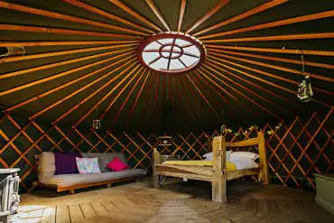 Five beautifully handcrafted yurts with a wood burner, solar lights, a spacious double bed, two futons and other cosy furnishings inside each.