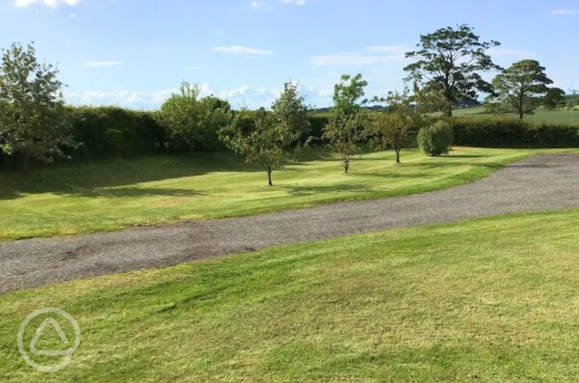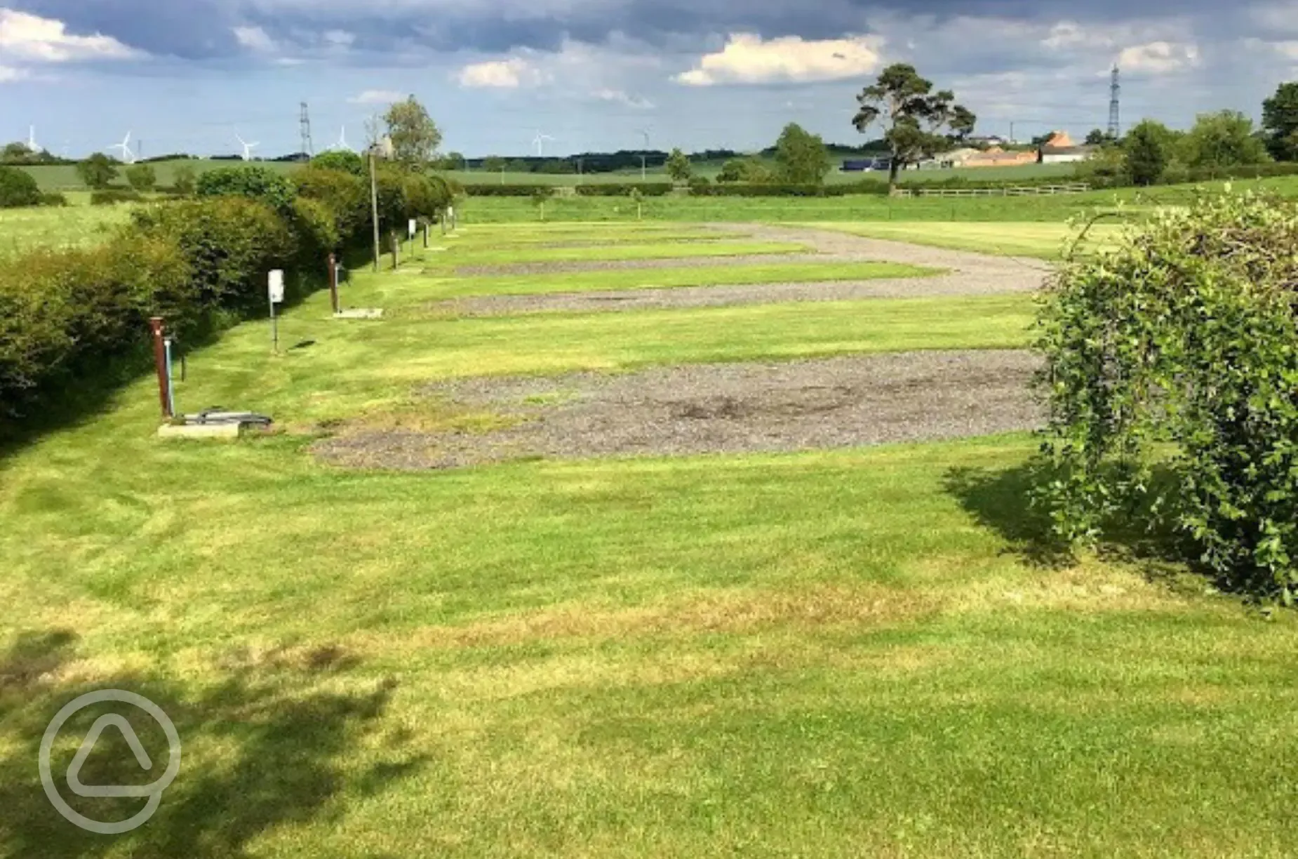 Pitches on hardstanding which are fully serviced with 16-Amp electric, mains water, TV hook-up and grey waste disposal. Sized at 8x6 metres each with an additional grassed area 8x6 metres.