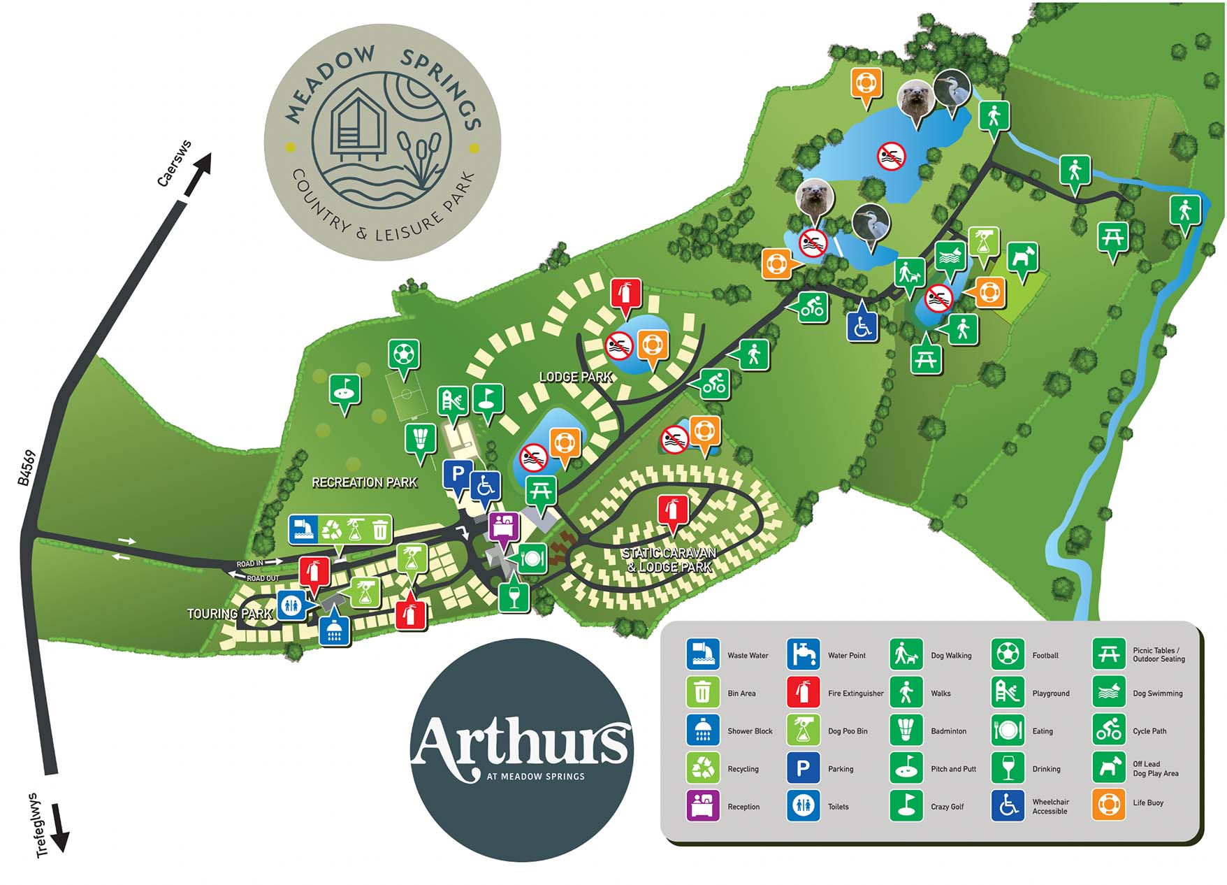 This peaceful site is set in the Trannon Valley, the heart of Mid Wales, and is a lovely stop for families and couples to park up and relax. The park takes its name from its own underground springs, which are the water source of the park's lakes and ponds. 65 full-serviced hardstanding pitches are available, all of which come with electric hook-up, drinking water and grey water waste disposal, with some for adults only. The pitches are very spacious, all measuring 9m x 9m. WiFi is available throughout the park. Switch off and relax as you breathe in the Welsh country air and with nearly 4 miles of walkways on the park, it's the ideal place to relax and unwind. Dogs are welcome with their own secure exercise field to run free, as well as a dog wash for those muddy paws! And after a hard day doing not-a-lot, enjoy the best of local produce, all freshly cooked at Arthur's Restaurant and Bar, remember to book a table, it gets very busy! Previously voted best Caravan Park in Wales as voted at the VisitWales National Tourism Awards.