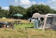 Grass pitches without electric in a far corner of the site, suitable for tents only. These pitches are a little walk from the shower block but there is a compost loo nearby. Direct access to the woodland walk.