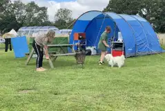 Yes, the site is dog friendly with up to three permitted per pitch and in each of the bell tents. Please note, breeds and crossbreeds listed in the Dangerous Dogs Act are not permitted.