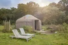 A large yurt with safari-style furniture and the luxury of a king-size bed. Inside, enjoy the woodburning stove and leather sofa.