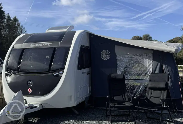 Hardstanding touring pitches with 16 amp electric. Suitable for campervans, caravans and motorhomes. Pitches are 8m x 8m.