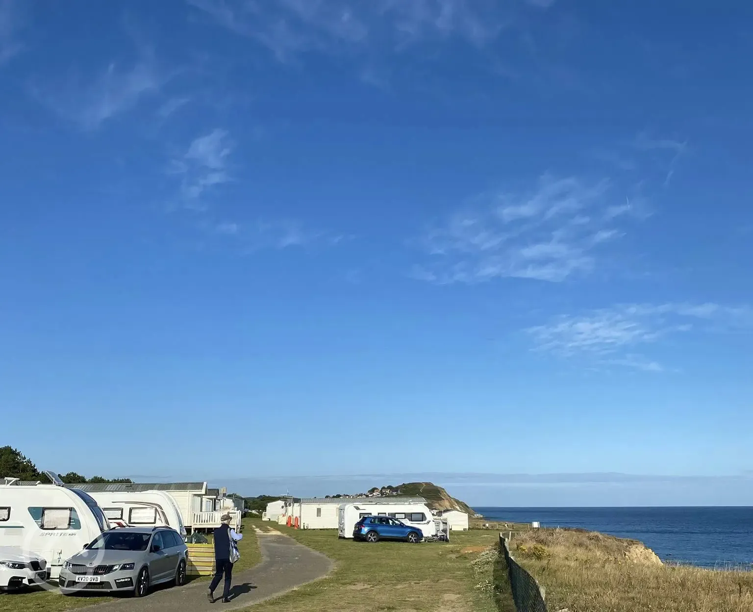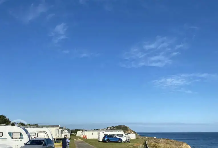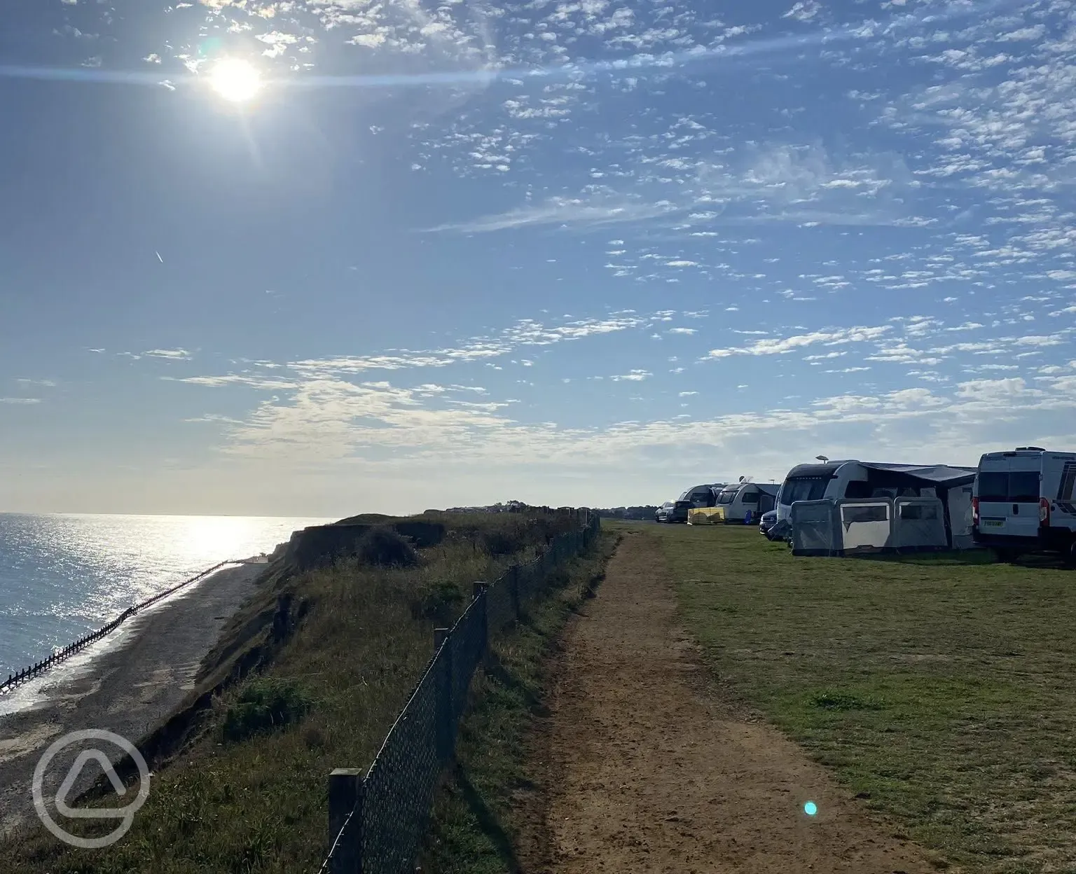 Hardstanding pitches with 16-Amp electric and panoramic sea views.