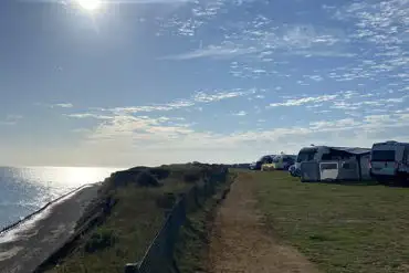 Perfectly positioned for walks along the coast, this park is family run and friendly - with a tempting beachside location. Sunsets over the sea are well worth seeing and there are picnic benches thoughtfully placed for anyone looking to grab a bite in the fresh air. For tourers there are hardstandings with 16-Amp electric, all with the best of sea views and space for your motorhome or caravan with an awning. Sorry, the park does not accept campers. Dogs on leads are welcome to stay with you on your pitch but sorry they cannot stay in the site's well equipped static caravans.