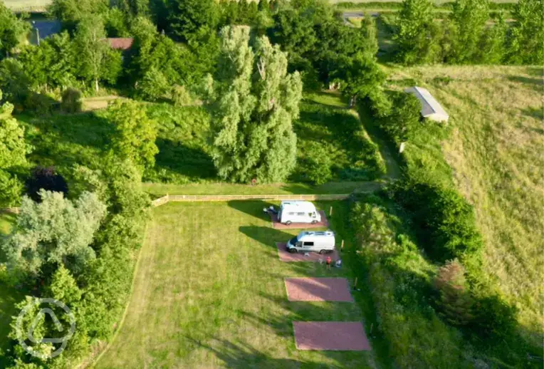 Quiet, private tent, caravan and motorhome site. Dog friendly and 15 minutes from the coast.