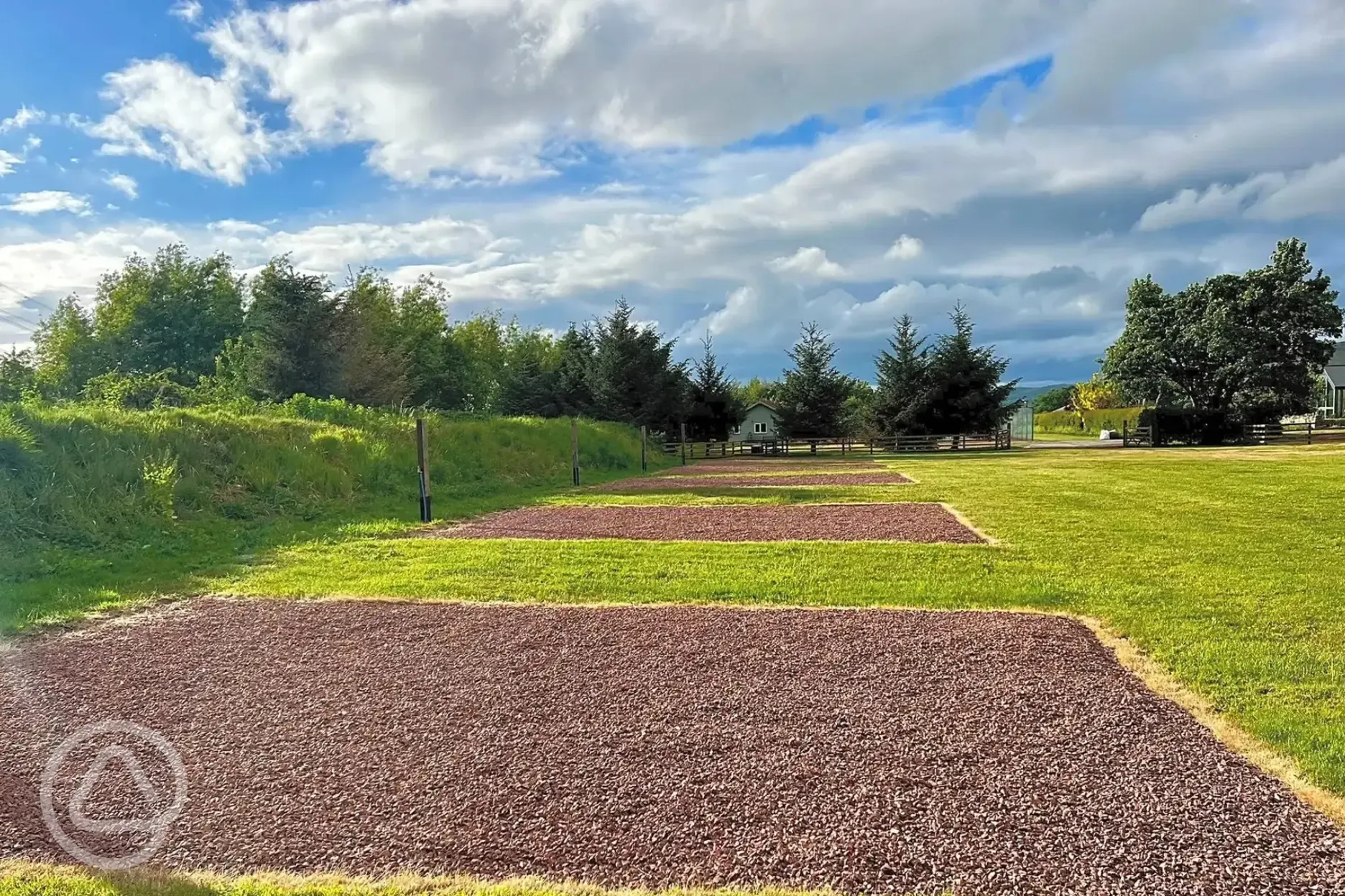 Non electric gravel 5.5m x 10m hardstanding pitches with a water hook up and chemical waste point. To suit caravans, campervans, and motorhomes.