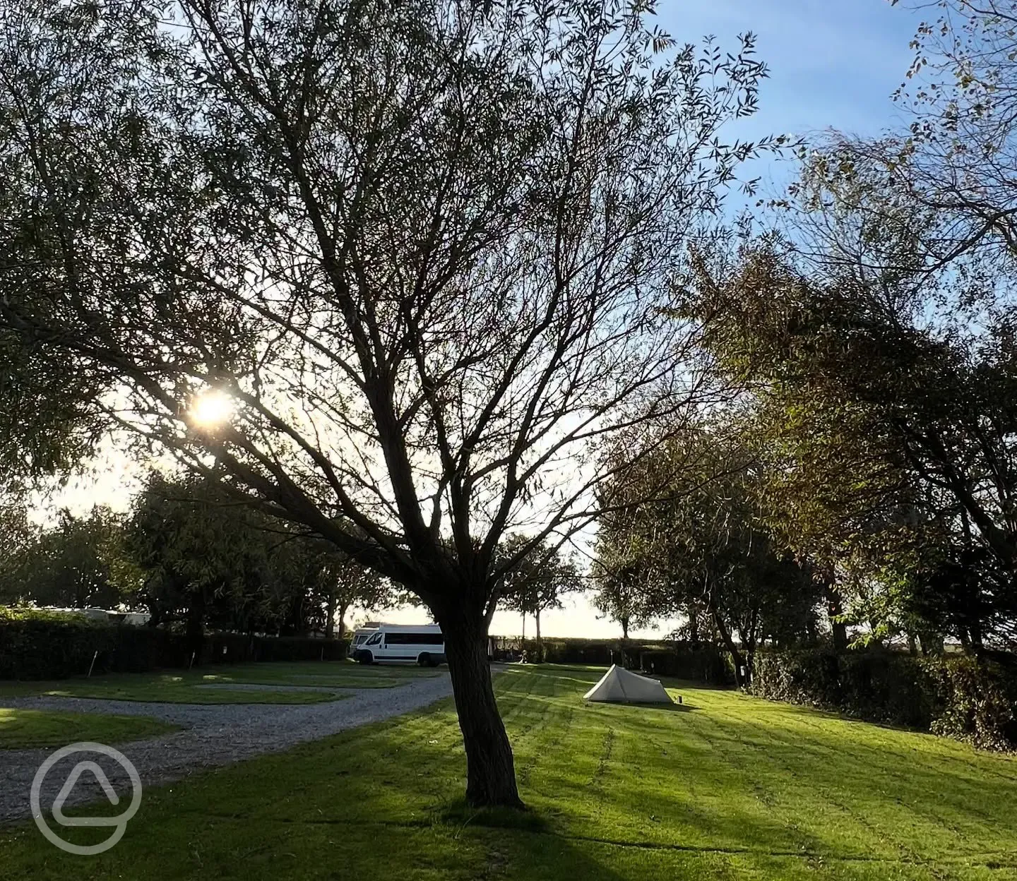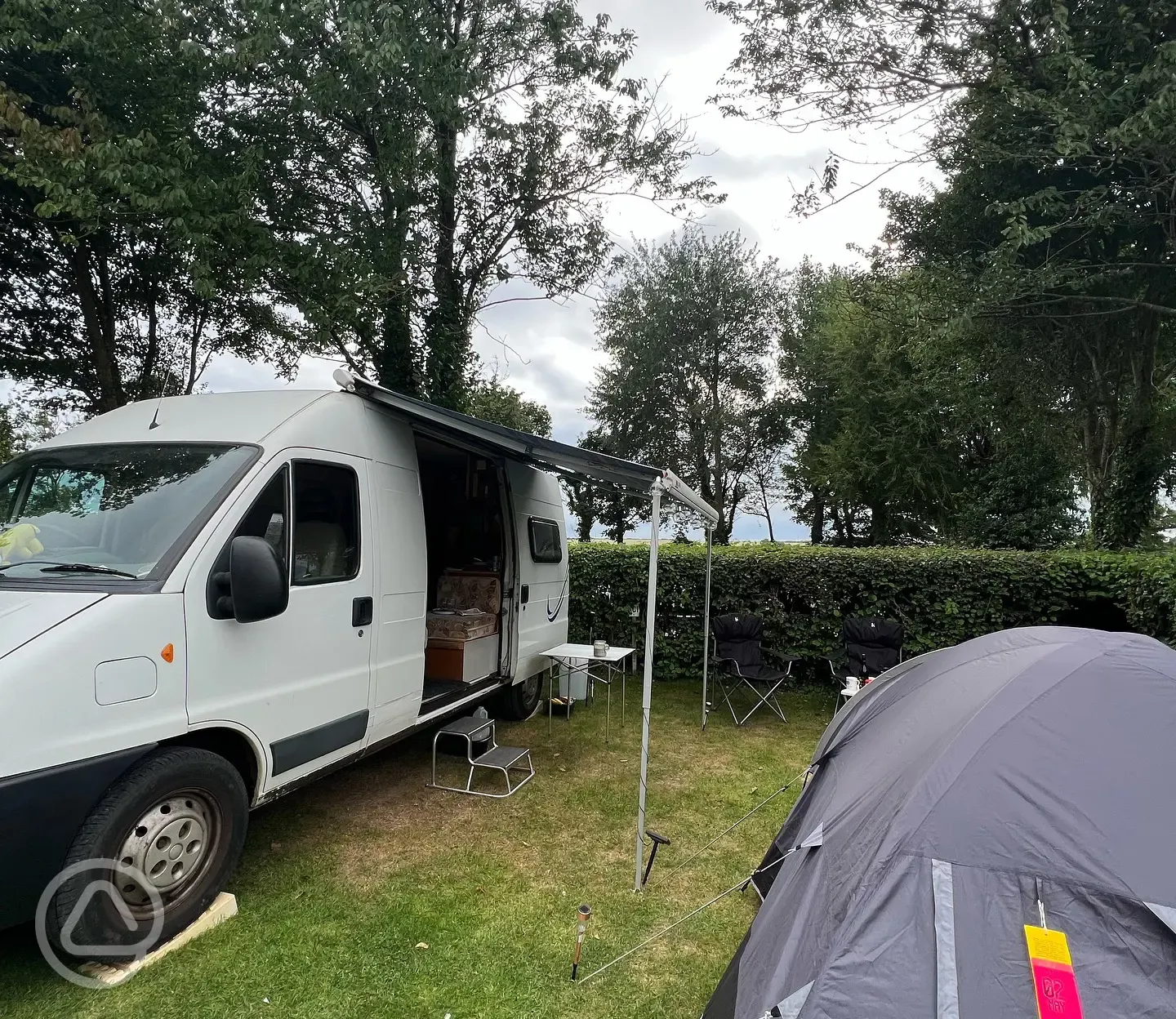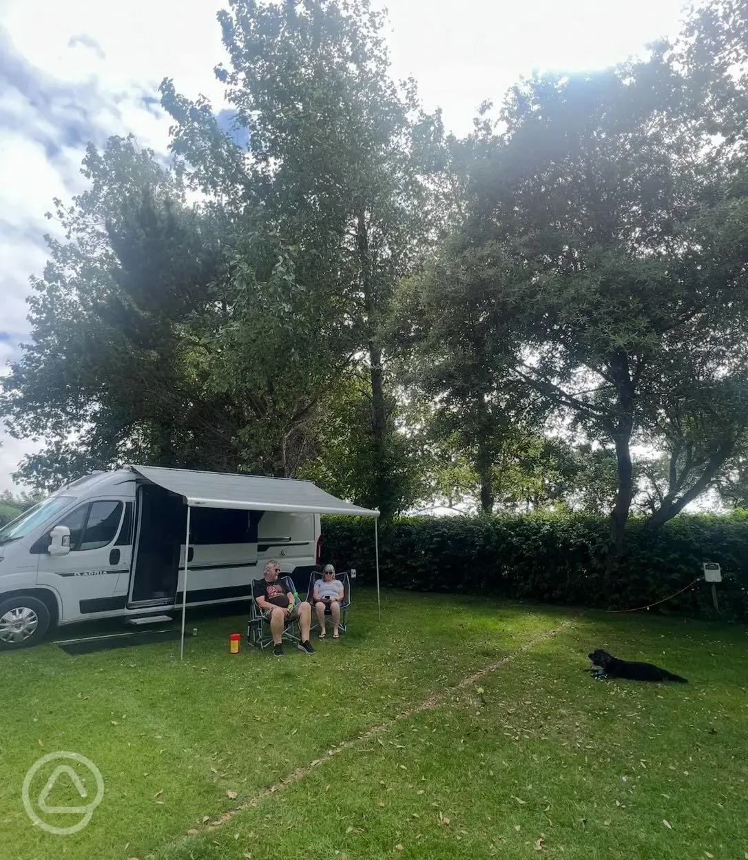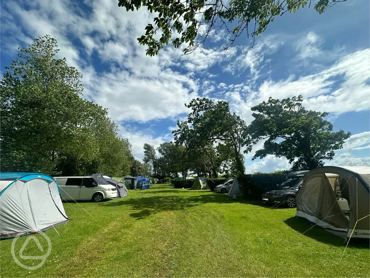 Grass pitches, with electric hook-up available for campers and caravans. Some pitches have hedges surrounding them, ideal for tents as they provide extra shelter.