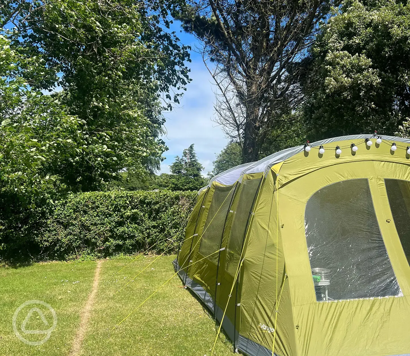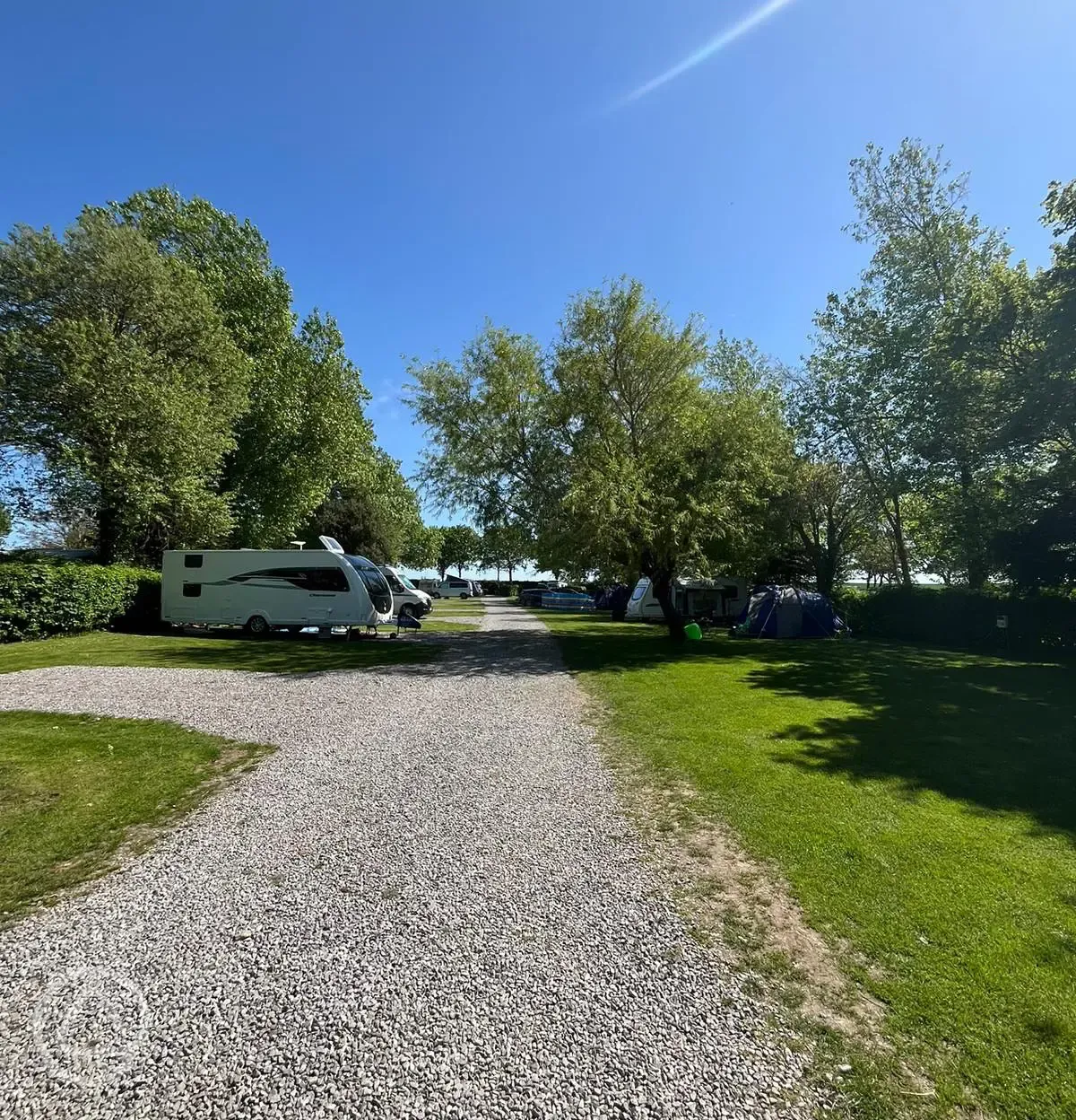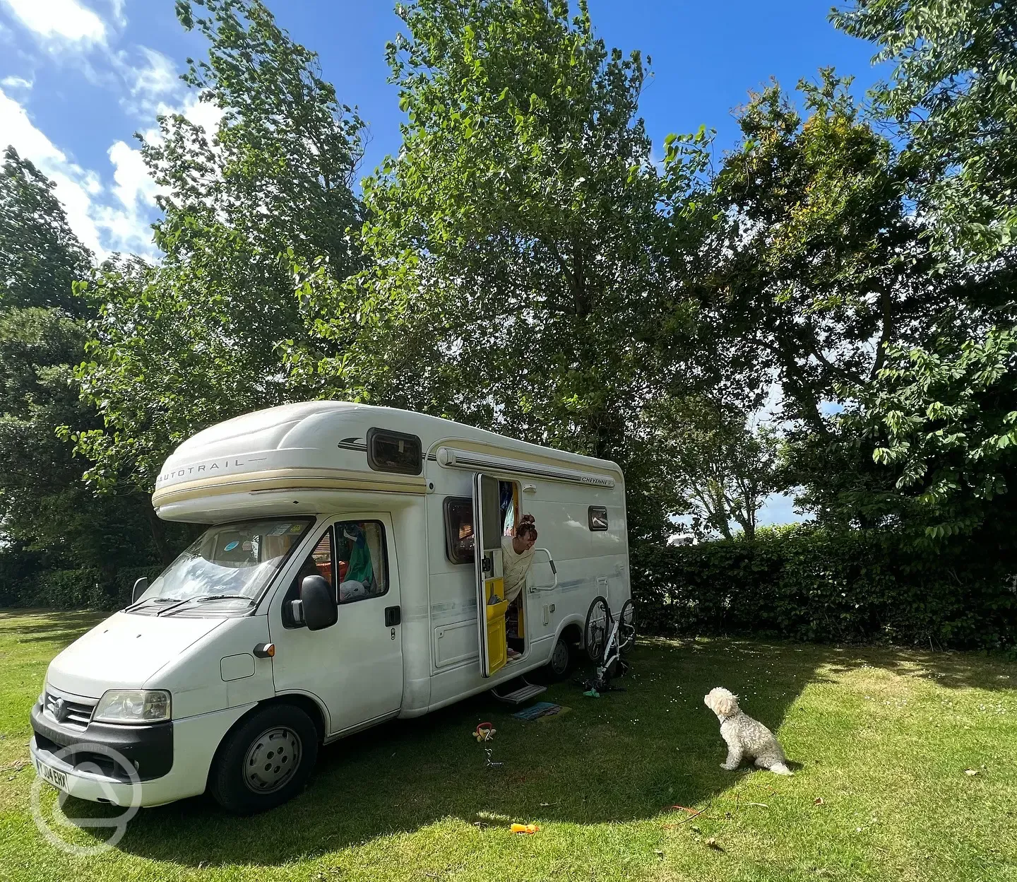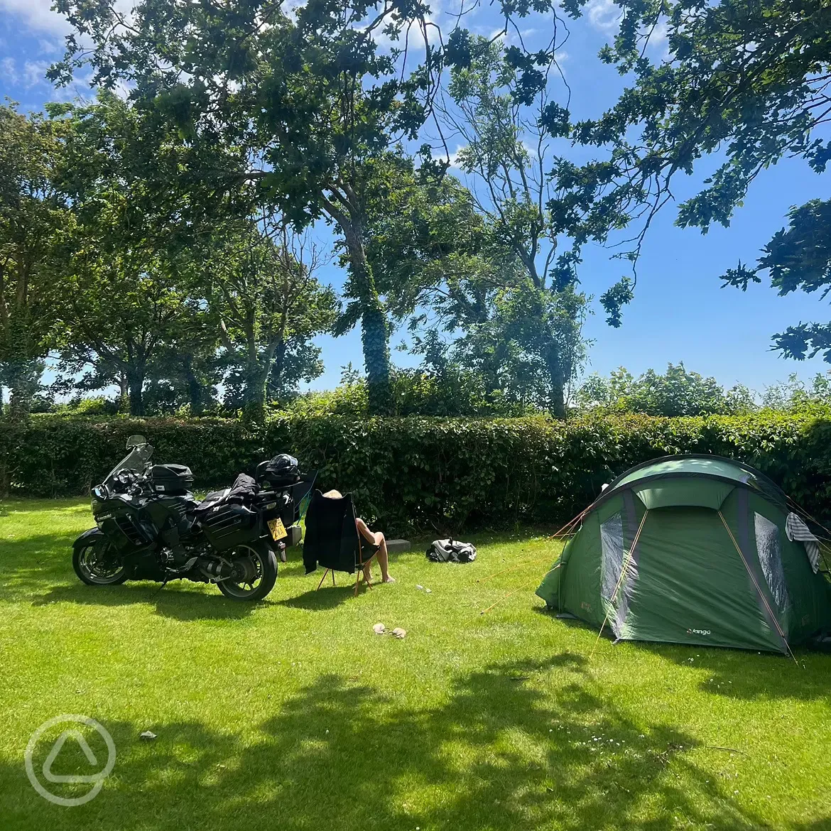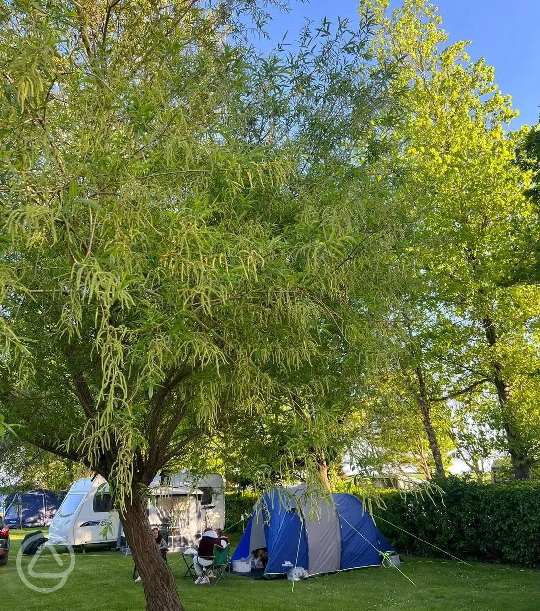 Grass pitches, with electric hook-up available for campers and caravans. Some pitches have hedges surrounding them, ideal for tents as they provide extra shelter.